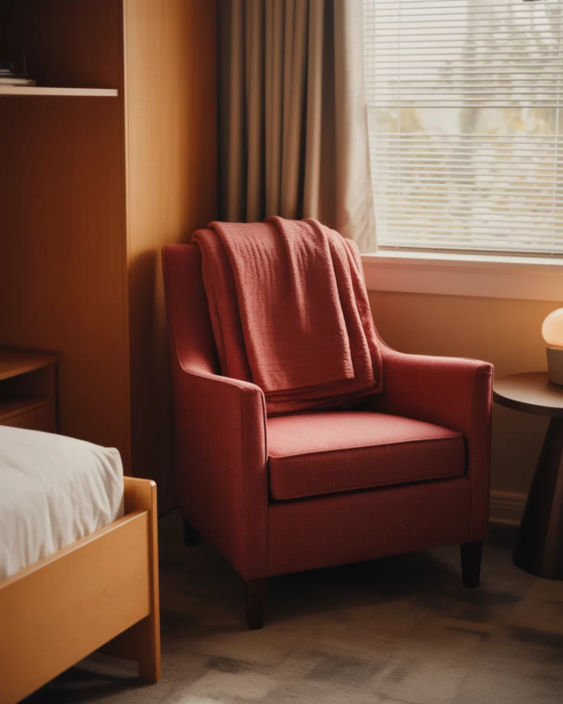 Japandi style combines the elegance of Japanese minimalism with the warmth of Scandinavian design. This design appeals to students with neutral color palette such as light gray, beige and sage green, wood furniture and simplicity in lines. The rooms are purposefully minimal with a very homelike feel designed to give students stress relief in the middle of campus craziness. Add a low wooden bed, linen curtains, and a simple paper lamp for a true aesthetic cozy vibe.