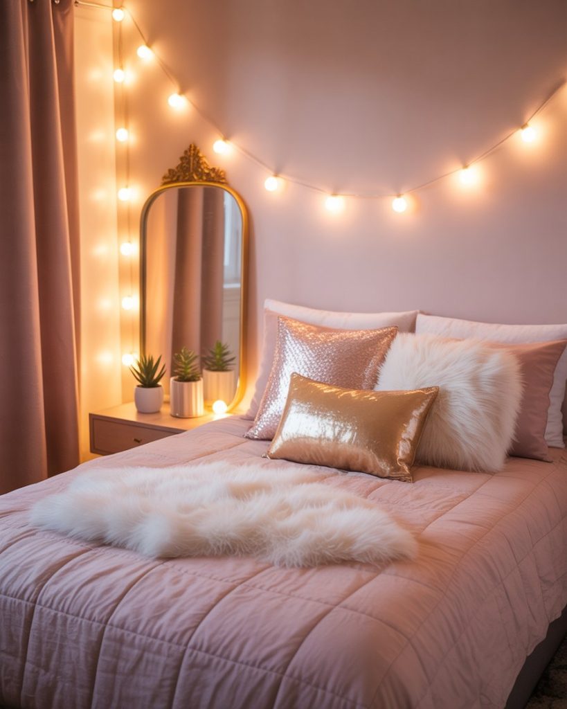 Purple, when paired with gold, feels luxurious and dramatic. Add deep plum bedspreads, gold-touched mirrors and other rich textures like velvet to bring your dorm room up to palatial court. This style suits those with a flair for the dramatic or anyone who loves an aesthetic that feels opulent yet cozy.
