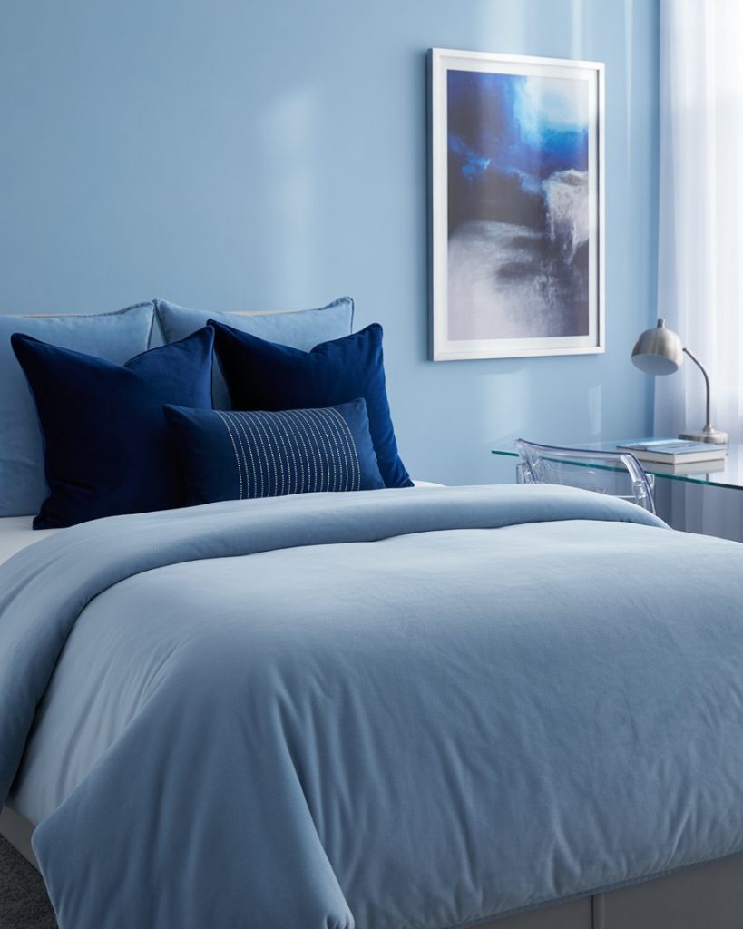 Color schemes blue are scientifically proven to promote relaxation—ideal for high-stress college environments. To make it a cool-toned oasis, fill it with navy comforters, light blue wall art and silver pieces. This modern look is both crisp and comforting. Blue- the universal win regardless of gender. Add a textured rug or lofted bed to give dimension without disrupting the calm vibe.