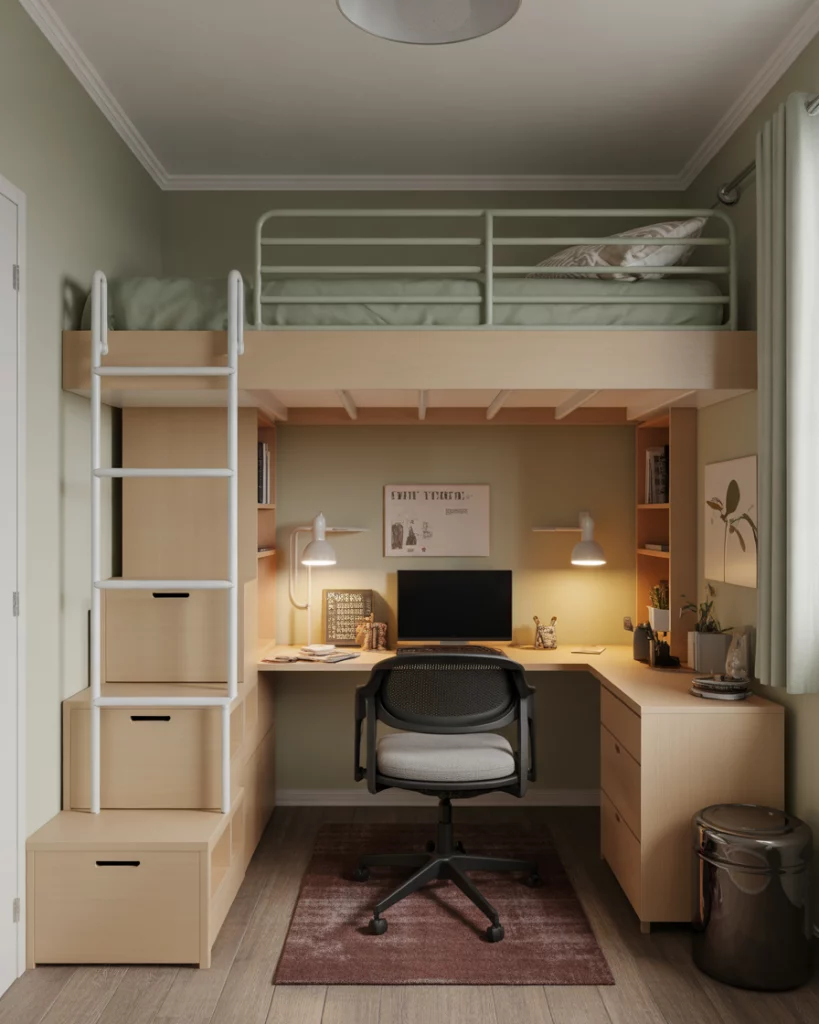 19. Floating Desk & Lofted Bed Combo: Maximize Space
