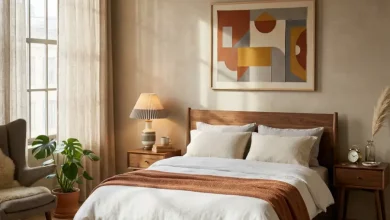 Add character with vintage touches—retro posters, thrifted lamps, or old suitcases stacked as a nightstand. Opt for the color schemes such as red, mustard, and pale blue to present the feeling of ‘the past’. This concept is ideal when used by creative people who enjoy combining the centuries and are not afraid to be bright. Check out The Jungalow for vintage-meets-modern decor inspiration.
