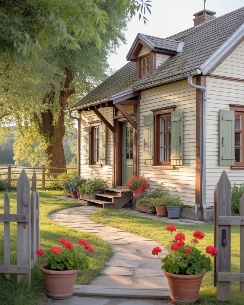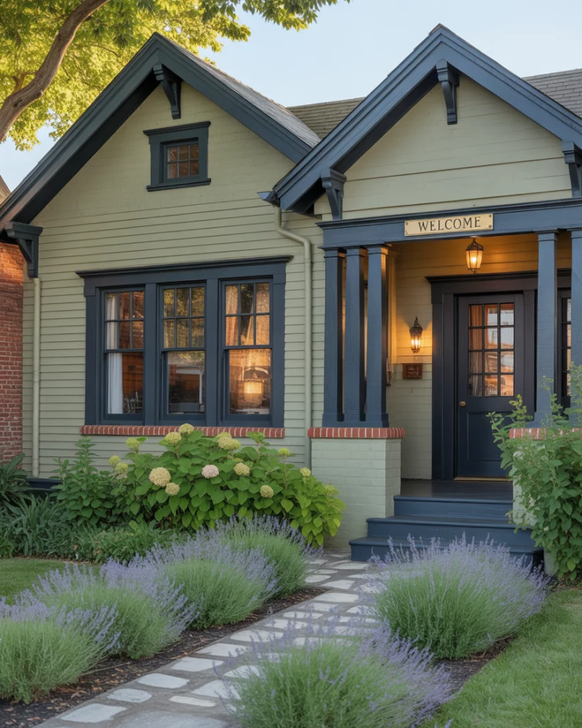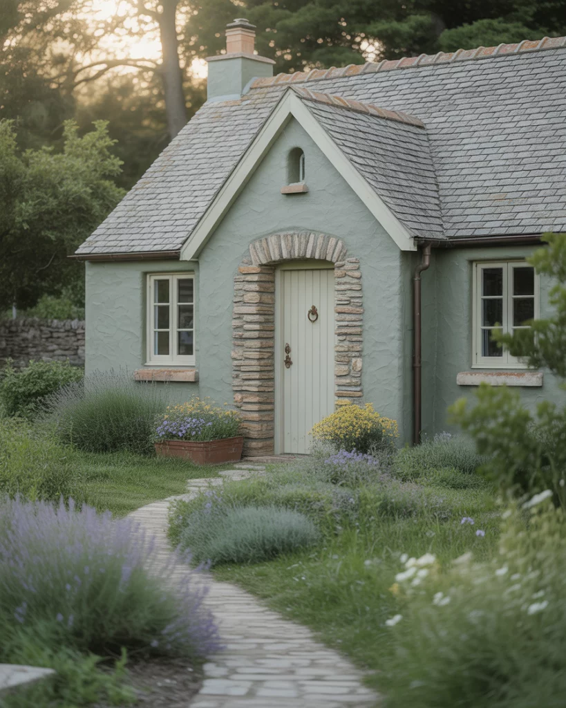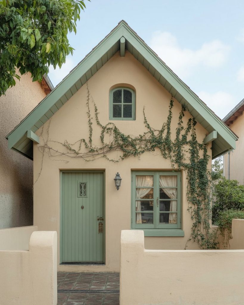 Pairing sage with soft cream brings an organic elegance to a home’s façade. The mix is ideal when it is applied to rustic cottages, stucco villas, or even the bloxburg style of modern. Influencers note how this palette blends into natural landscapes while still appearing refined.
