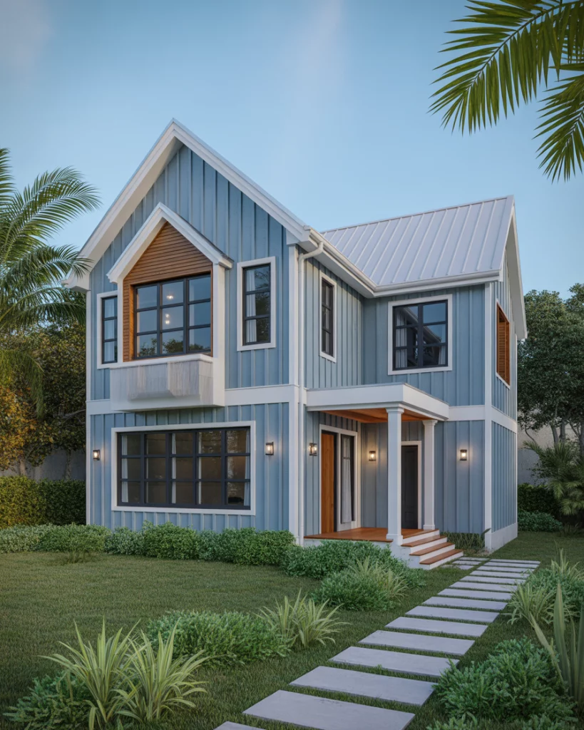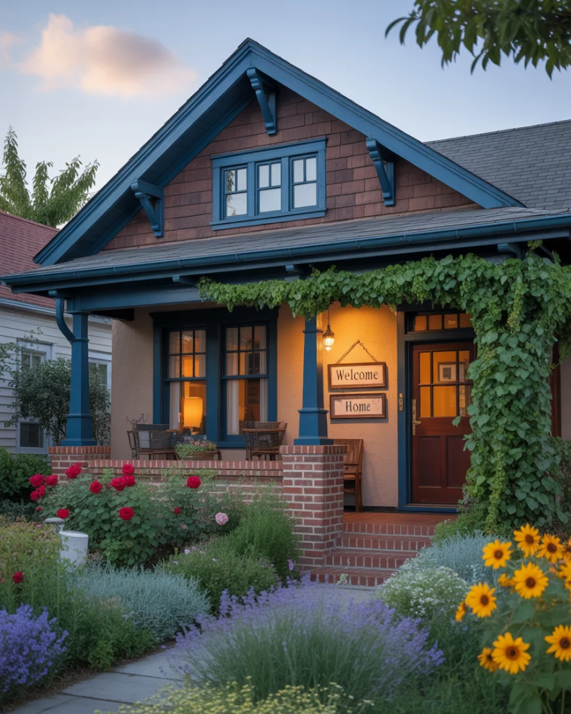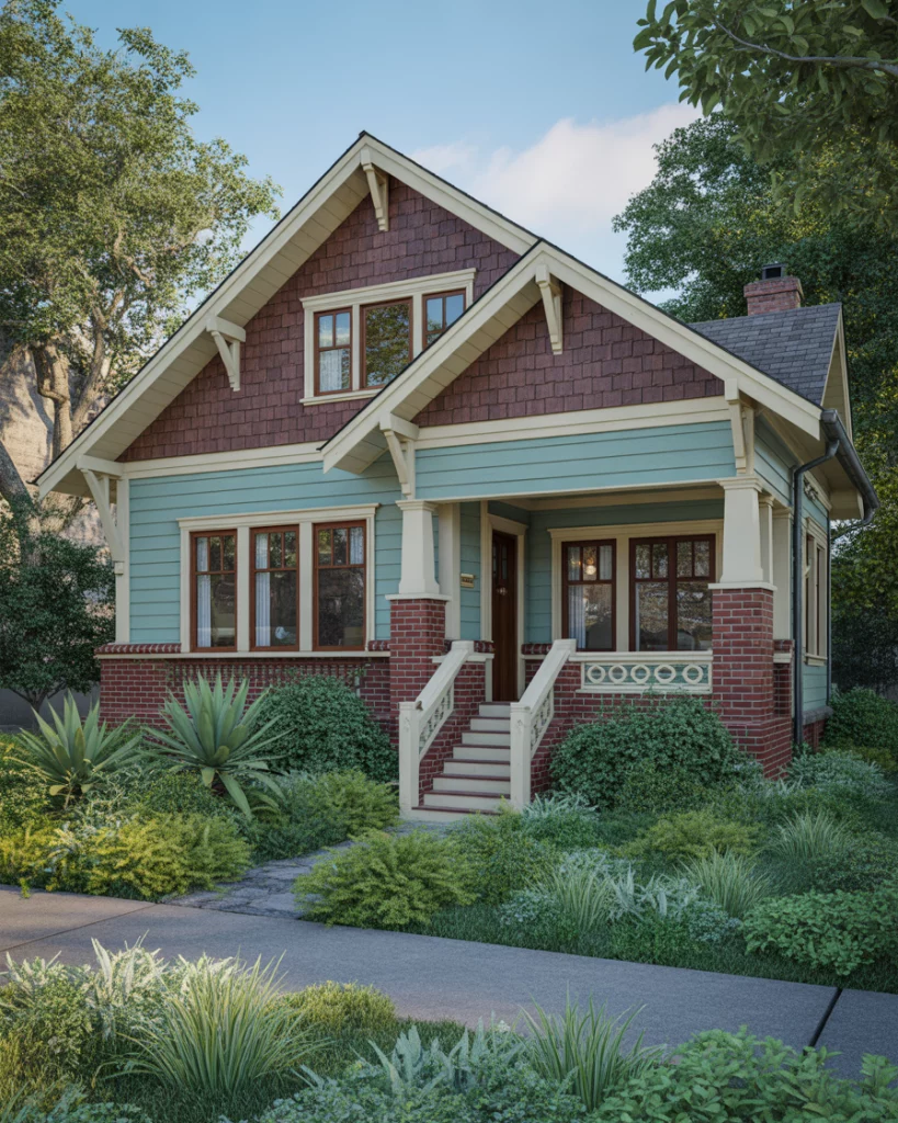 Blue and brown combinations create a grounded yet cheerful exterior palette. The blue offers freshness, while brown adds earthy stability. It is a favorite style among craftsman-style houses that are constructed with either brick or stone accents. Designers often use lighter blues with rich walnut tones for a balanced, approachable aesthetic.