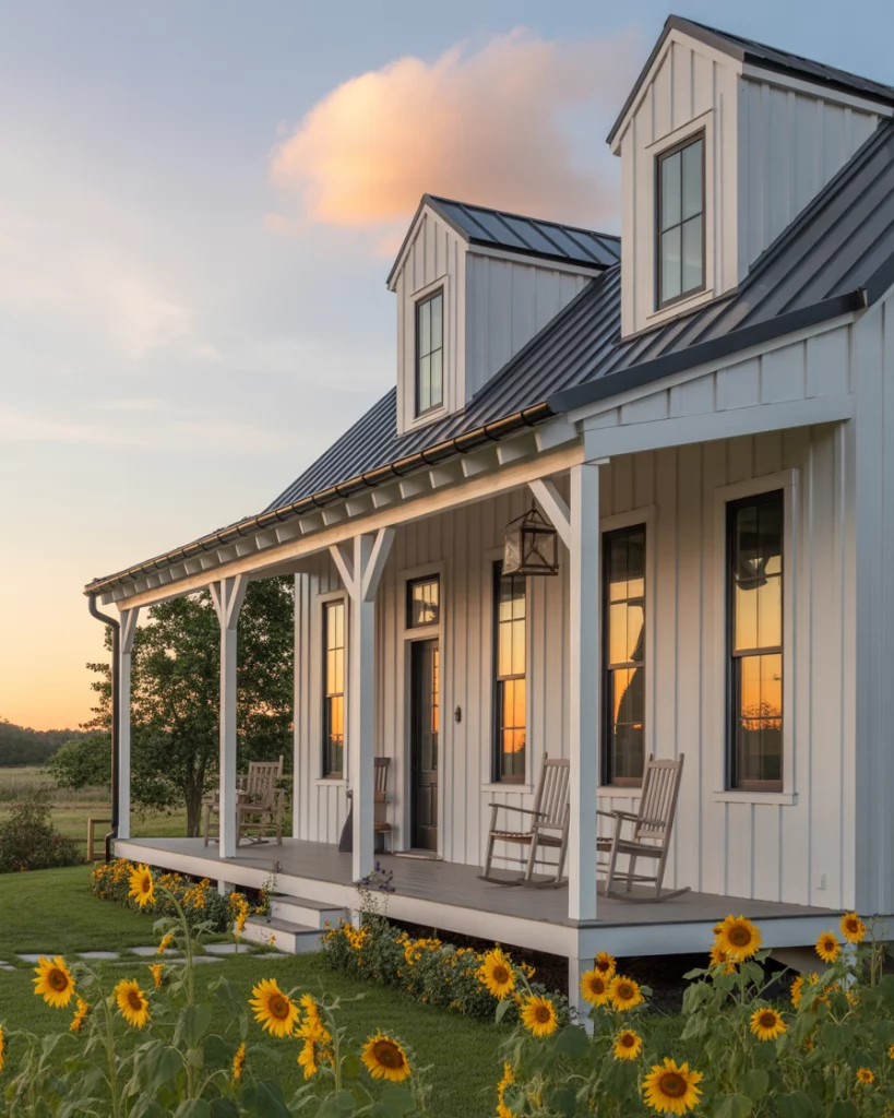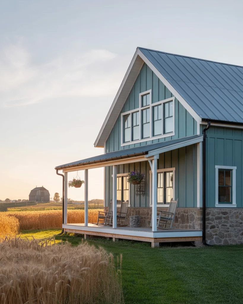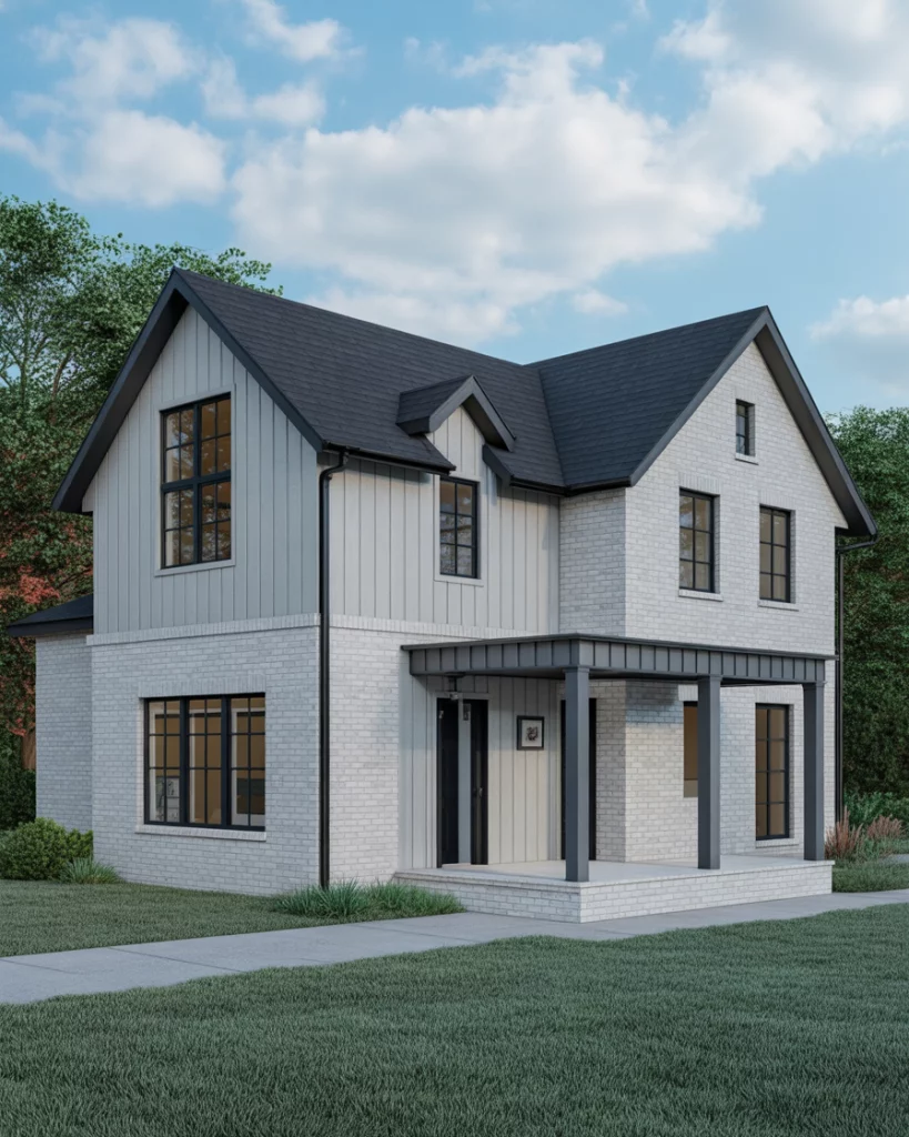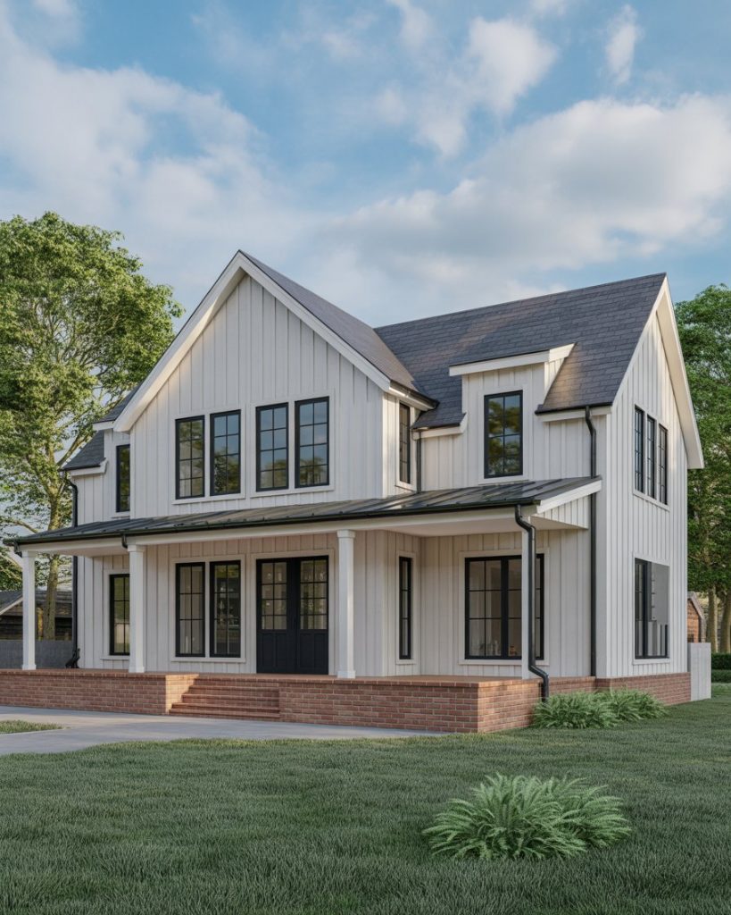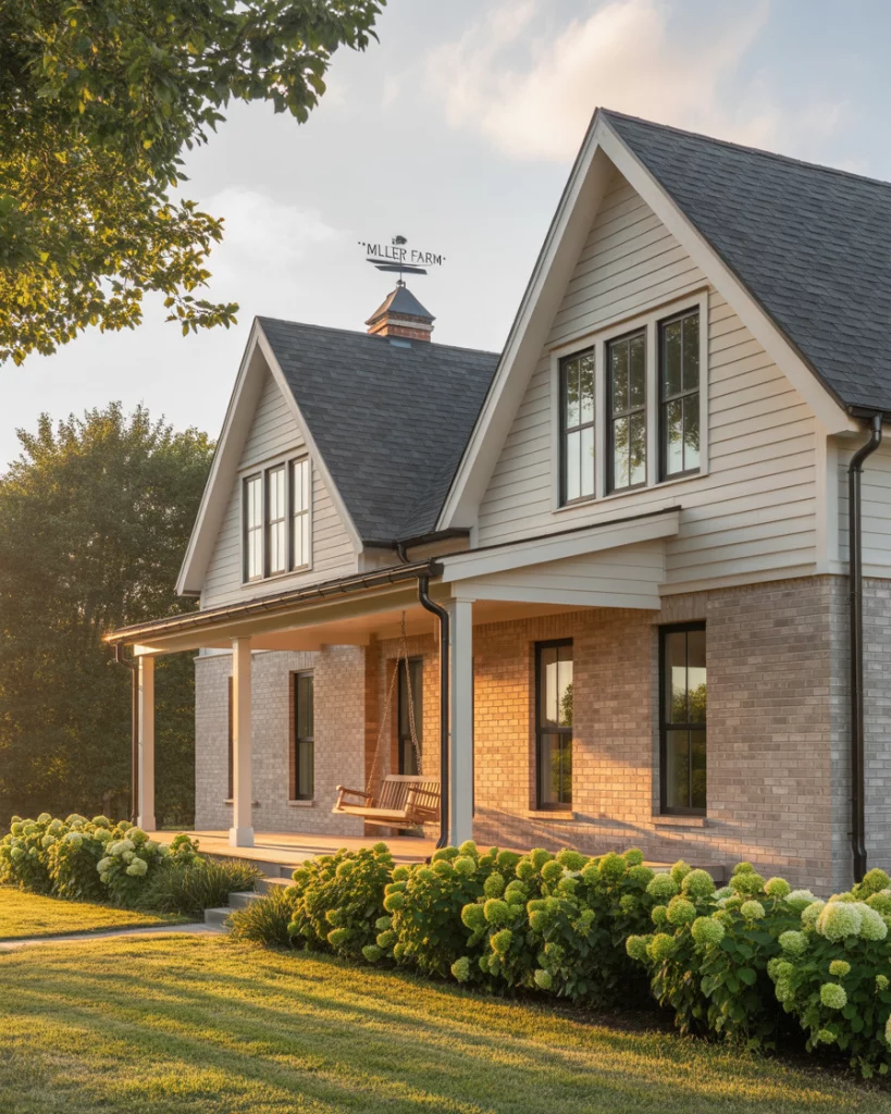 The combination of light grey siding with black windows has become a modern farmhouse staple. It provides pure lines and modern flair which pair well with a brick or a stone porch. This style is loved for its high-contrast, magazine-ready look.