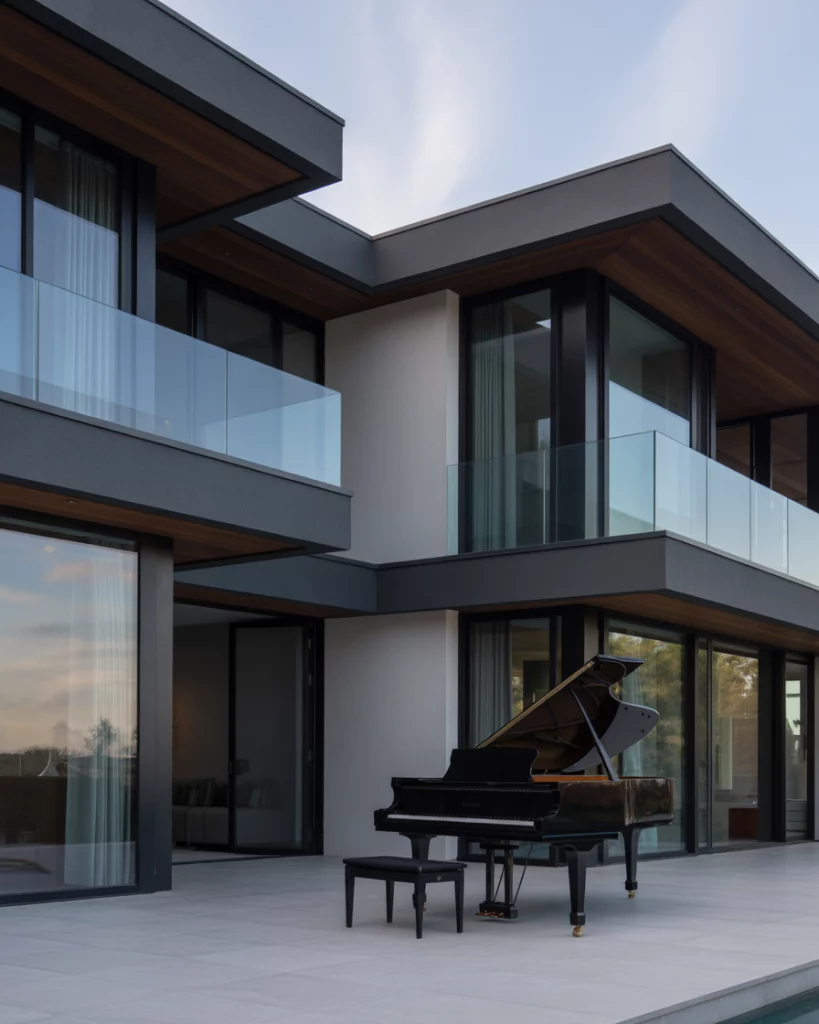 Pairing light gray walls with charcoal trim is a favorite in modern minimalism. Glossy shades of neutral colors will suit stucco as well as horizontal types of siding, and is particularly impressive with black windows. Many Australian contemporary homes feature this combination for its clean, timeless appeal.