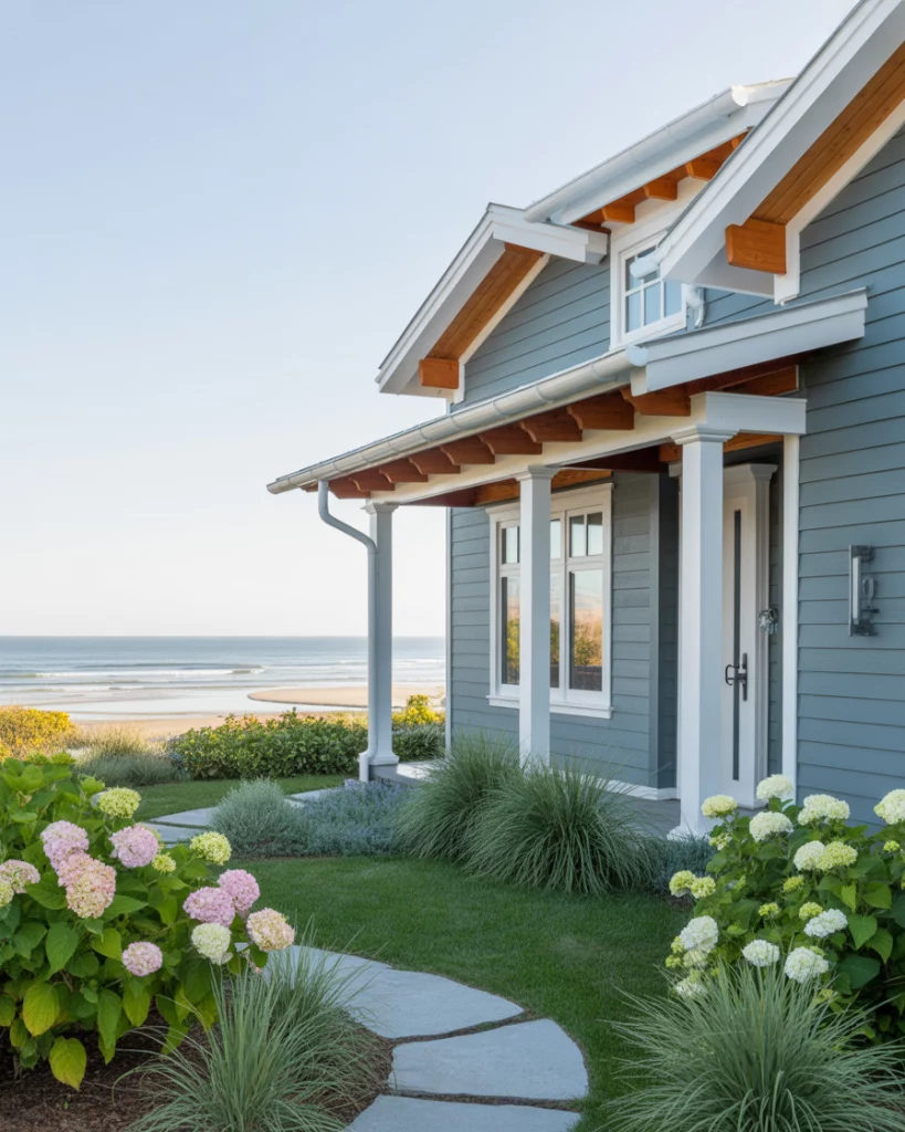 Blue gray—sometimes called blue grey—offers a serene coastal-inspired look that works beautifully for Australian homes or seaside cottages. This color is light yet solid (particularly with white borders and dark wood). It is a flexible alternative both to stucco and clapboard siding; providing homes with a new, but old fashioned look. Design experts often recommend it for houses with lots of natural light, as the soft blue undertones keep the exterior from feeling too cold.