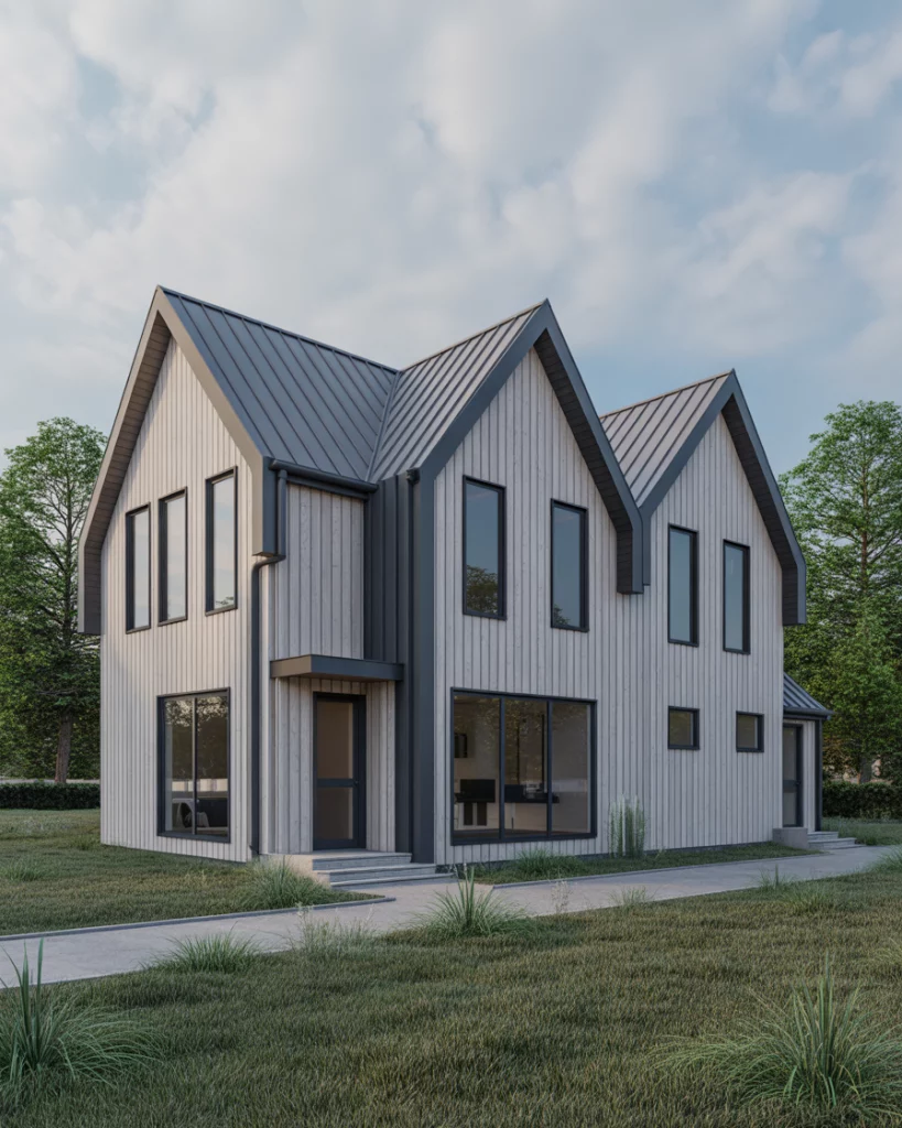 Light gray or light grey exteriors create a clean, modern look without the starkness of pure white. It goes spectacularly well with charcoal trim or soft sage accents to have subtle depth. This color is great when used with black windows designs and suits both modern urban constructions and modern-style farmhouses inspired by bloxburg. Experts note its ability to enhance curb appeal while staying understated.