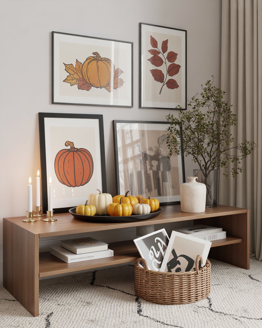 17. Autumn-Themed Art and Frames on the Coffee Table