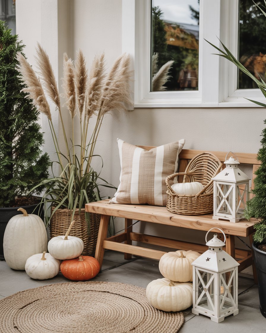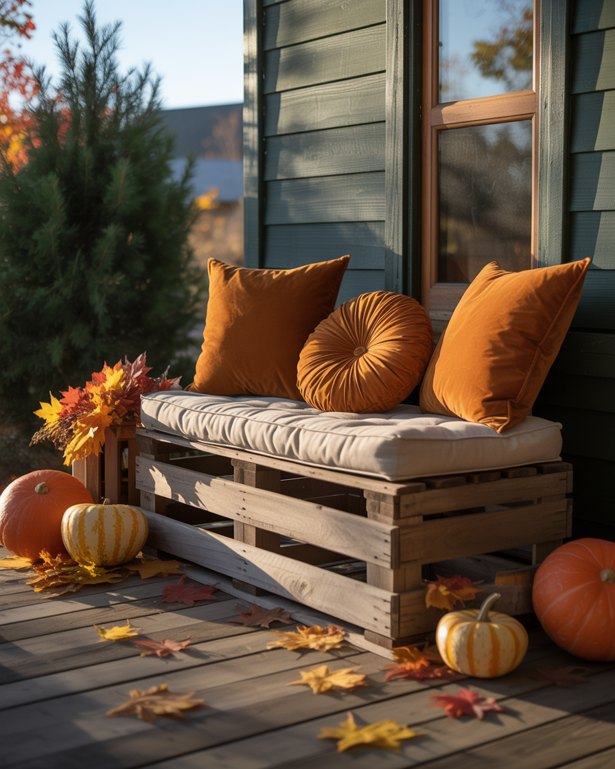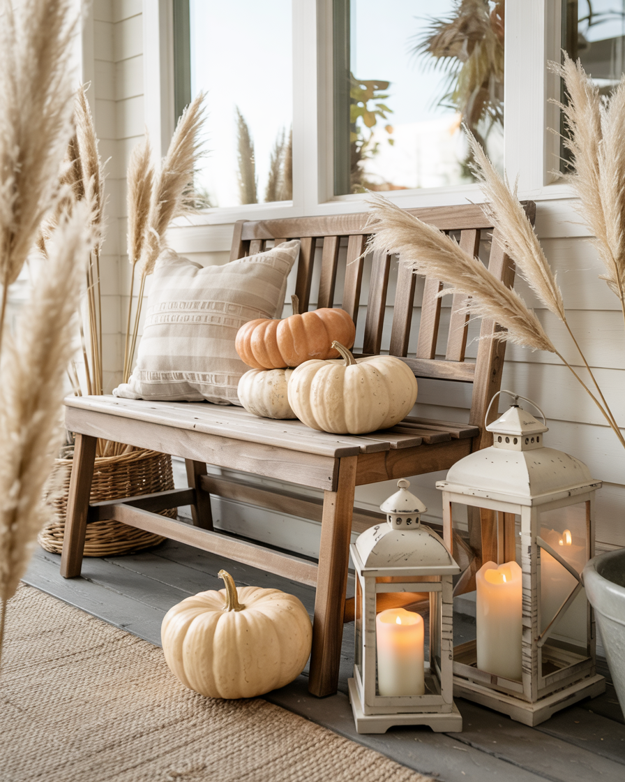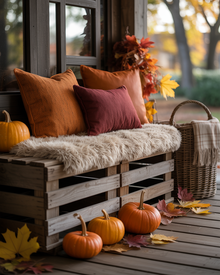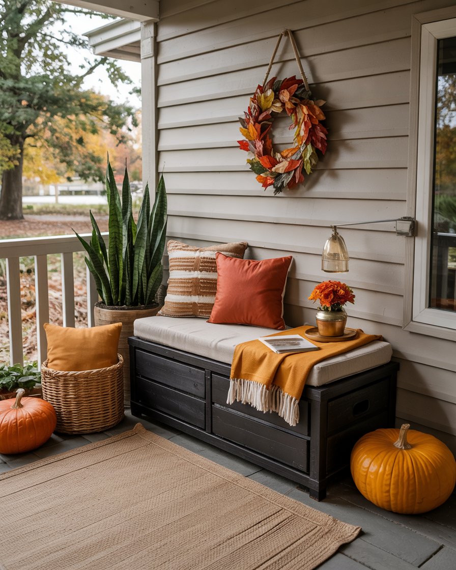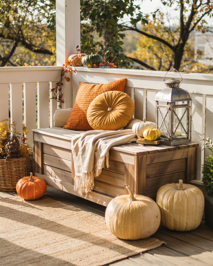 Place a small bench with built-in storage against a wall, layer it with pillows in burnt orange and mustard yellow, and stash fall throws or boots inside. It gives a porch a second room, and there is no pleasanter way of drinking cider or watching the leaves fall. This ideas space saving move is great for families or anyone who enjoys comfort with a purpose.
