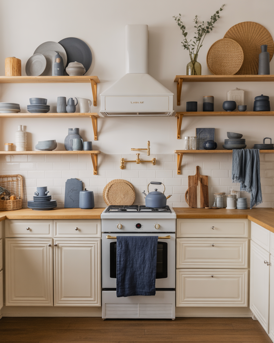 Ideas modern kitchens in 2025 lean into calming palettes, but injecting a muted blue — think slate or dusk — adds just enough edge to feel fresh. Imagine white-cabinets, off-white ones combined with navy linen or even a ceramic dish or a soft colored blue mixer. This is stylish enough without being overwhelming or dangerous to the fall cheer. It just took me that one time to add a blue kettle to my otherwise neutral kitchen and it was transformed. If you’re decorating your apartment, this simple update works wonders.
