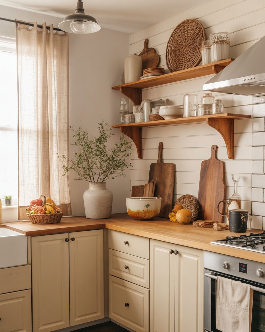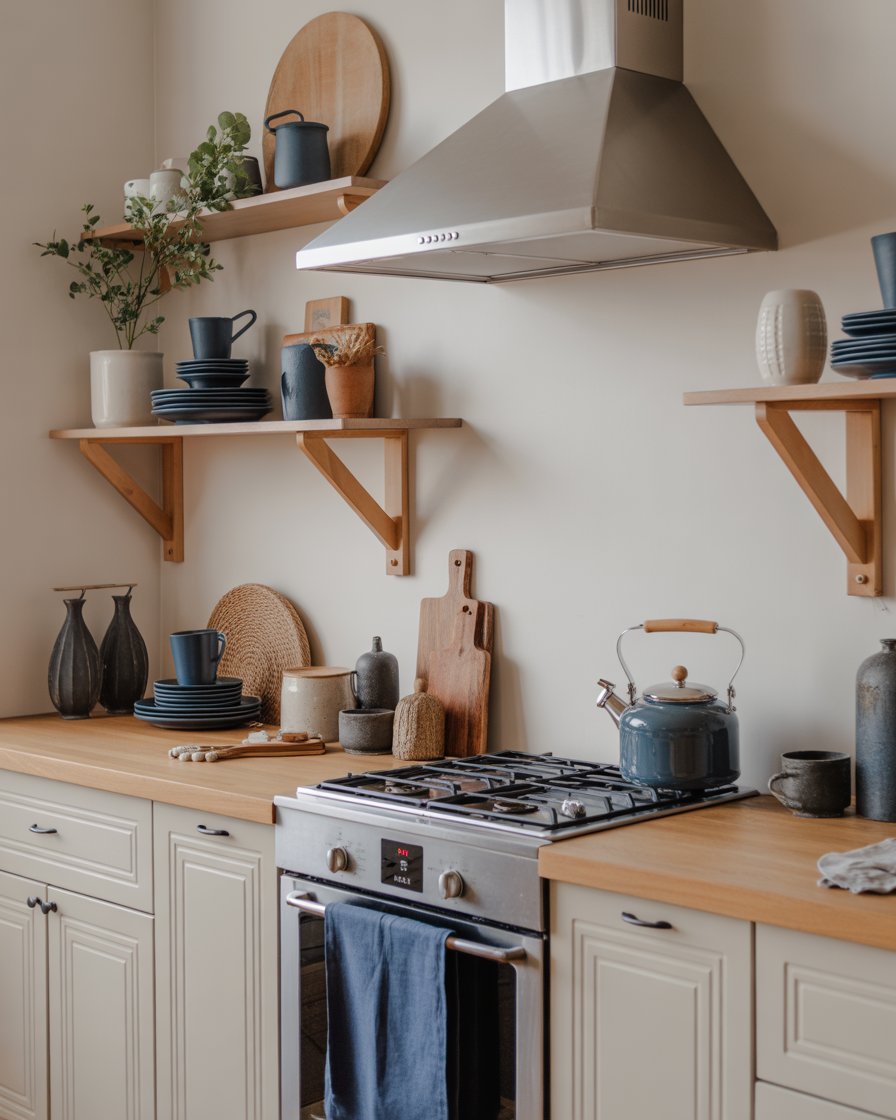 3. Open Shelving with Cozy Displays