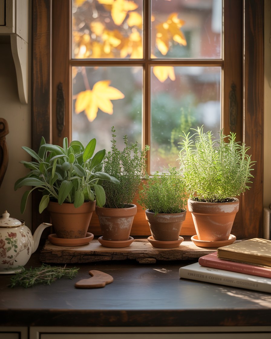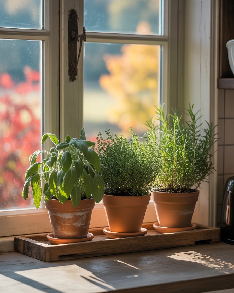Creating a small herb garden on your windowsill or countertops brings both function and autumn charm. Experiment with terracotta pots of rosemary, sage or thyme, which are useful as cooking ingredients as well as decoration. It’s one of those ideas diy that works in any kitchen, even if you’re tight on space. Plus, the scent? Unbeatable.