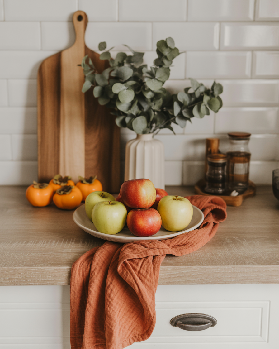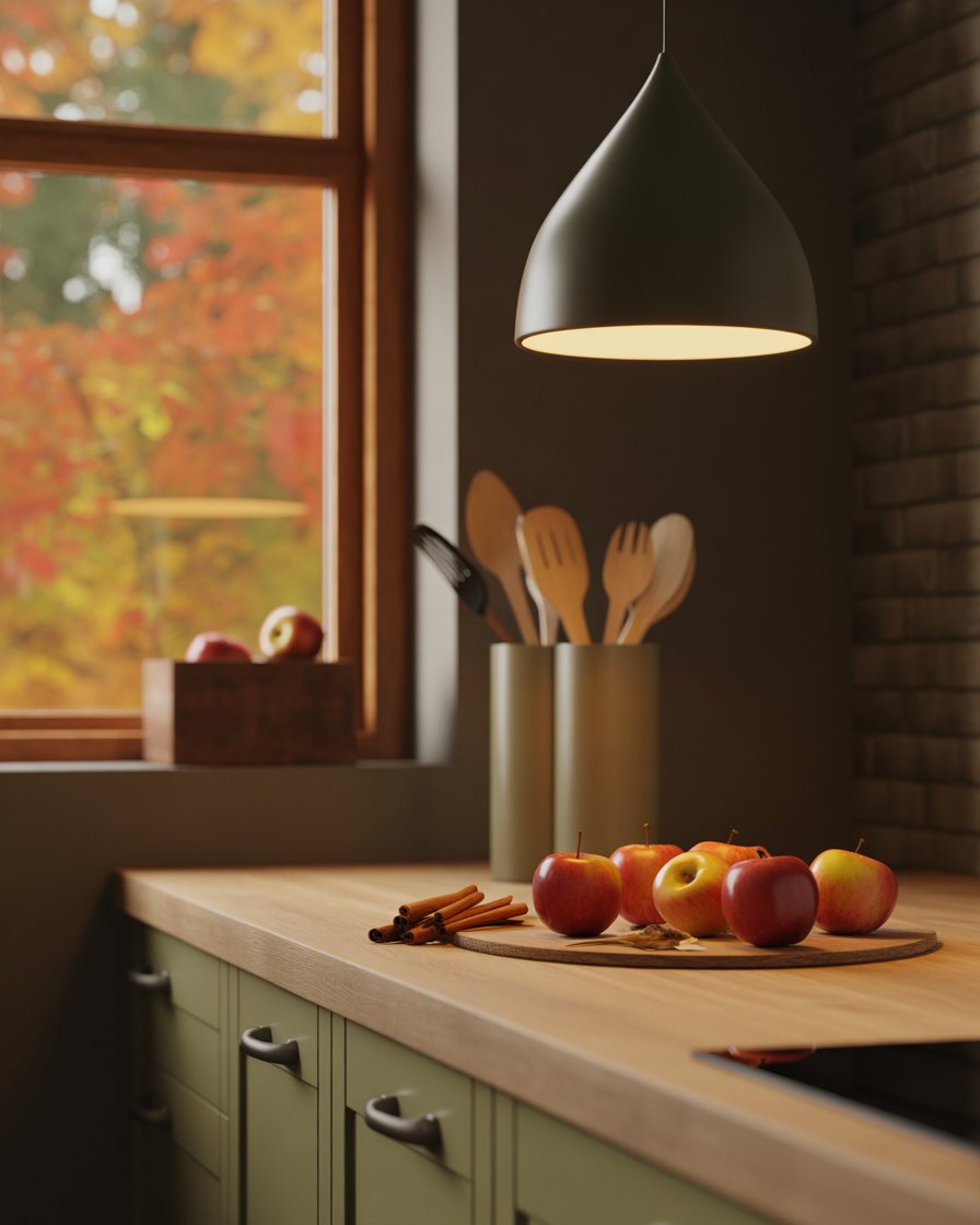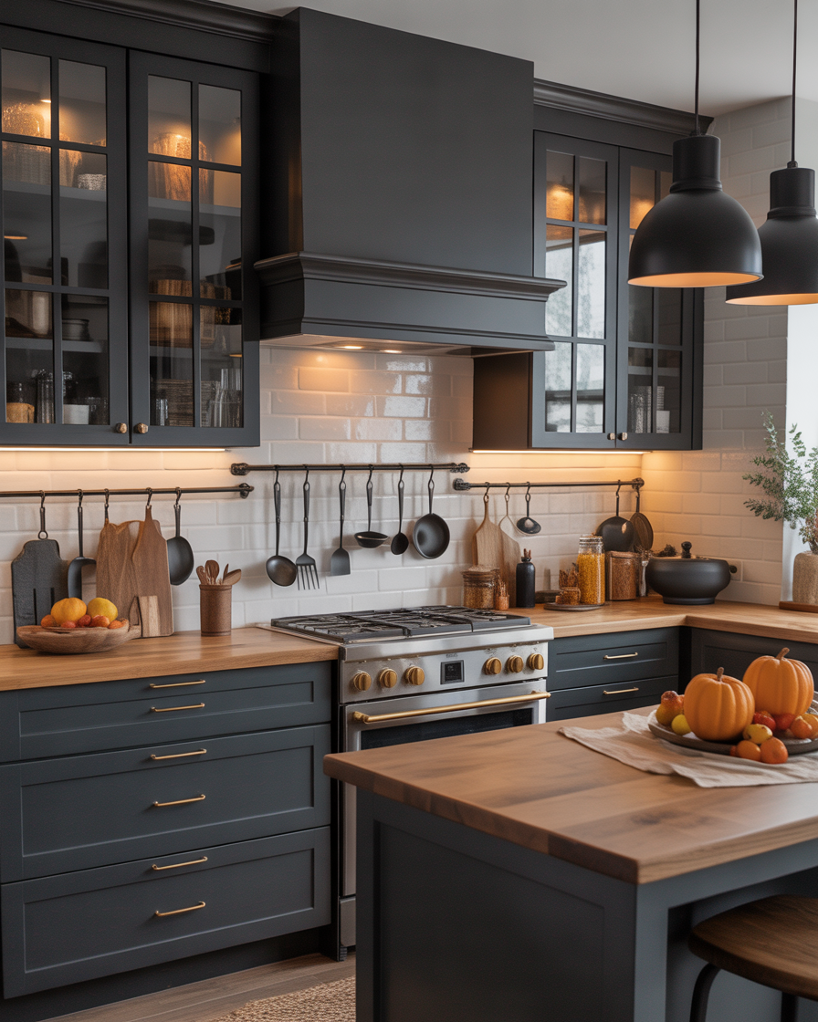 If you’re after ideas modern that still feel seasonal, try matte black accents — think hardware, utensil holders, or light fixtures. It contrasts to cozy wooden counter tops or autumnal colors, hence seems purposeful and luxurious. One apartment kitchen I toured had matte black cabinet handles with rust-colored towels — stunning and unexpected.