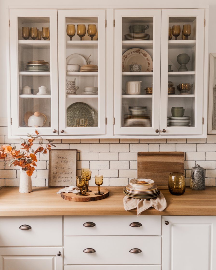 23. Glass Front Cabinets with Seasonal Styling