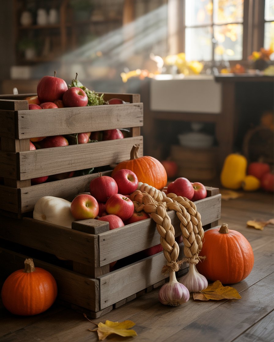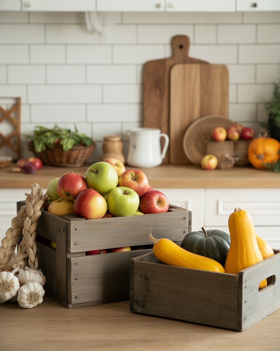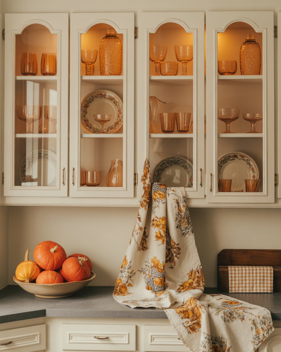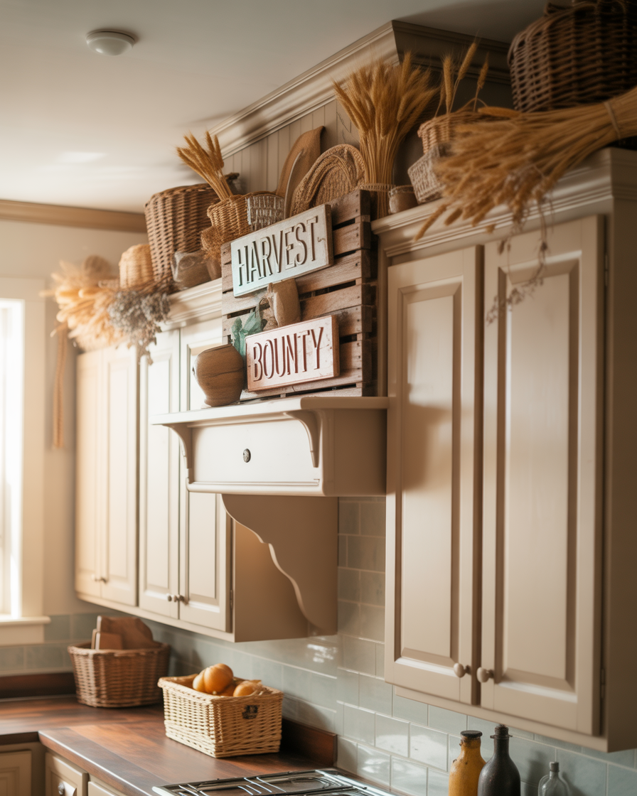 Don’t ignore that awkward space above cabinets — it’s prime real estate for ideas diy fall decor. Include woven baskets, dried wheat stalks or old time crates stuffed with fruits and vegetables of the season. A decorator once told me that styling high spaces draws the eye upward and makes the room feel curated and cozy.