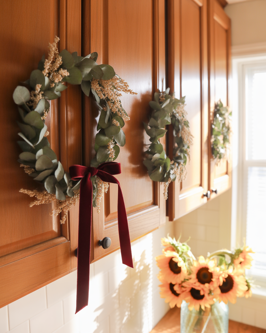 24. DIY Wreaths on Cabinet Doors