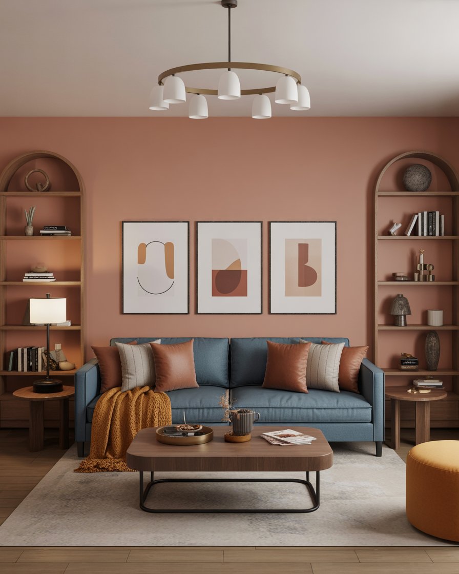 Yes, pink has a place in your fall decor — especially soft blush and dusty rose. These are tones of add warmth and character to exclude colour conflict with season. Incorporate pink via artwork, throws, or decorative bowls. On a blue couch or gray couch, pink adds a playful twist to a sophisticated setting. It’s particularly effective in apartment spaces where you want to blend soft color with aesthetic appeal.