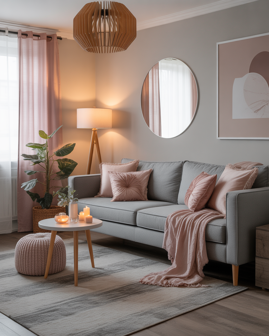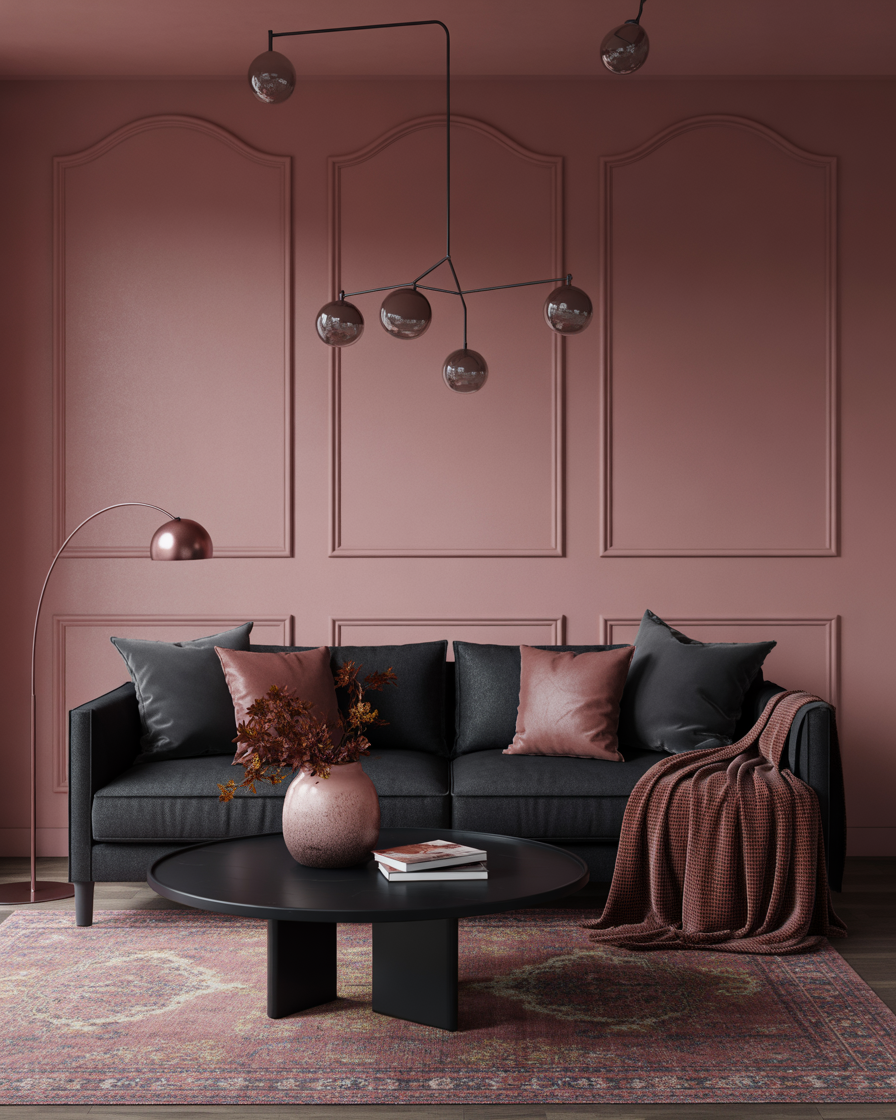 Pink gets a grown-up makeover when paired with moody colors. To mix it with in 2025, you can use dusty rose and mauve or blush and darker shades, such as burgundy, charcoal, or espresso. This brings out a dramatic receptive style that is particularly attractive within feminine-modern domains. Use pink on an accent wall, throw, or even lamp shade, layered against a dark gray couch or black couch for contrast.