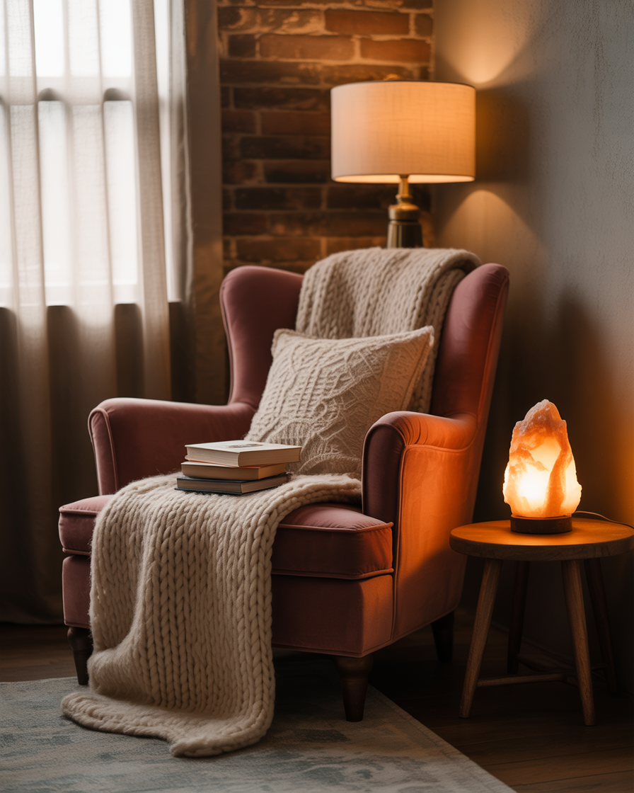 Sometimes all you need is a chair, a lamp, and the right blanket. Turn a neglected nook into a cozy retreat using layered textiles, an oversized pillow, and warm lighting ideas like a Himalayan salt lamp or a soft-glow sconce. Add a small stack of books or a basket of yarn to give the corner personality. It’s ideal for mens, small apartment dwellers, or anyone needing a personal recharge spot.