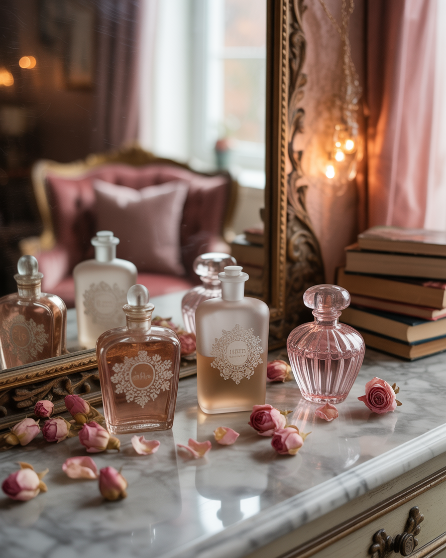 Revamp your vanity or dressing space with coquette flair and autumn elegance. Drape soft tulle around mirrors, use aesthetic pink makeup trays, and display mini pumpkins or vintage perfume bottles for charm. Soft warm lighting ideas like dimmable sconces or dainty fairy lights keep it romantic yet functional. It’s the perfect setting for getting ready on chilly mornings in style.