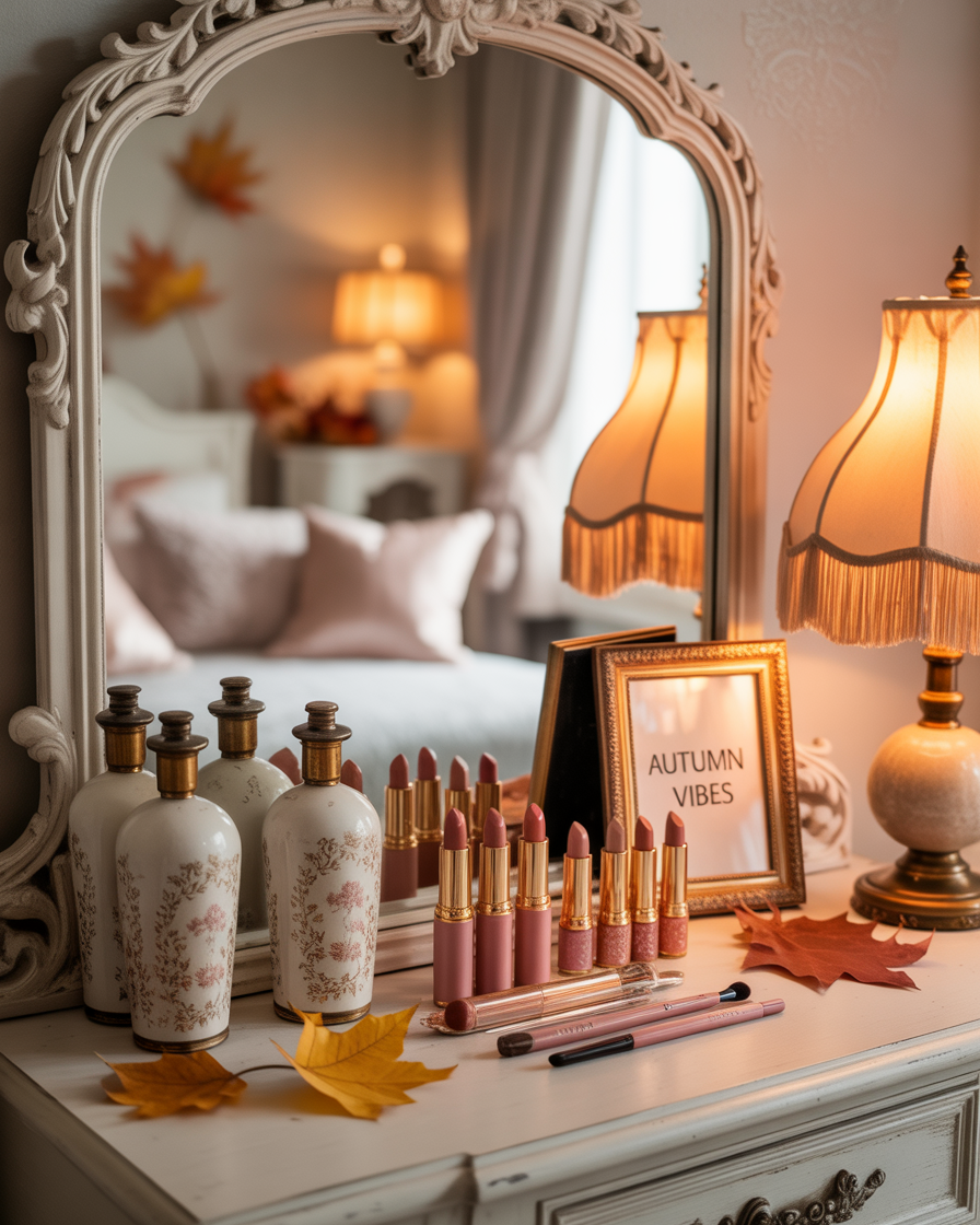 13. Coquette Fall Vanity Setup for Seasonal Glam