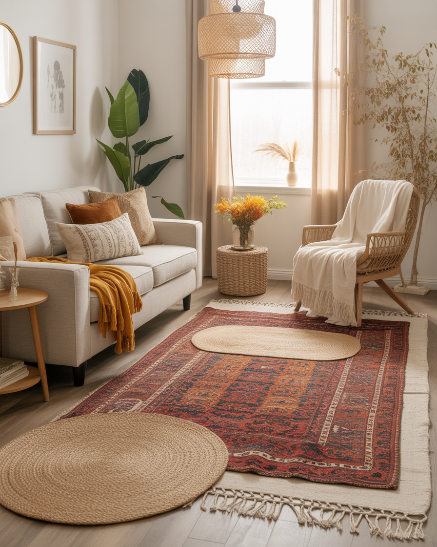 15. Layered Rugs for Boho Fall Comfort