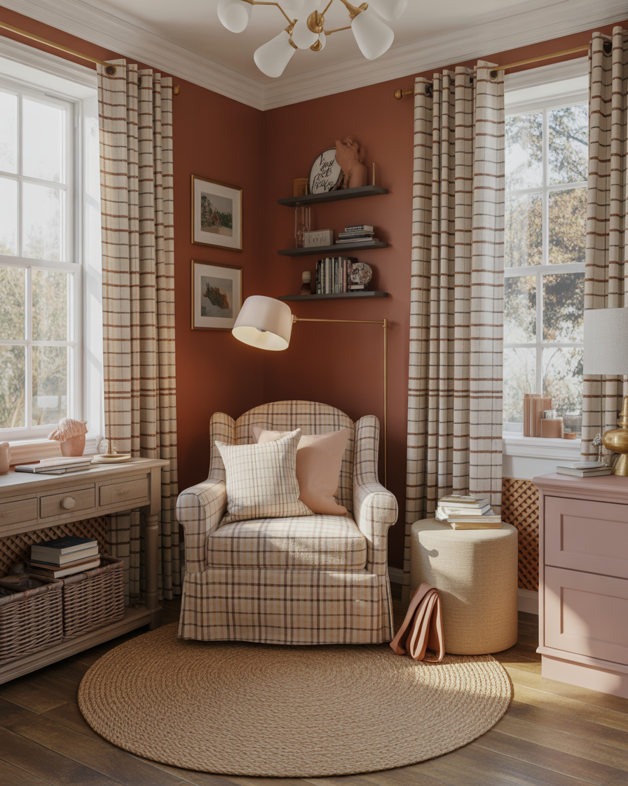 In 2025, preppy plaid is having a comeback—not just in fashion but in interiors too. From pillow covers to wall tapestries to diy plaid-painted accent walls, this pattern is classic fall. Stick to autumnal hues like mustard, navy, and burgundy to avoid a holiday feel. It’s especially cozy for a reading nook or bedroom setting with a scholastic vibe.