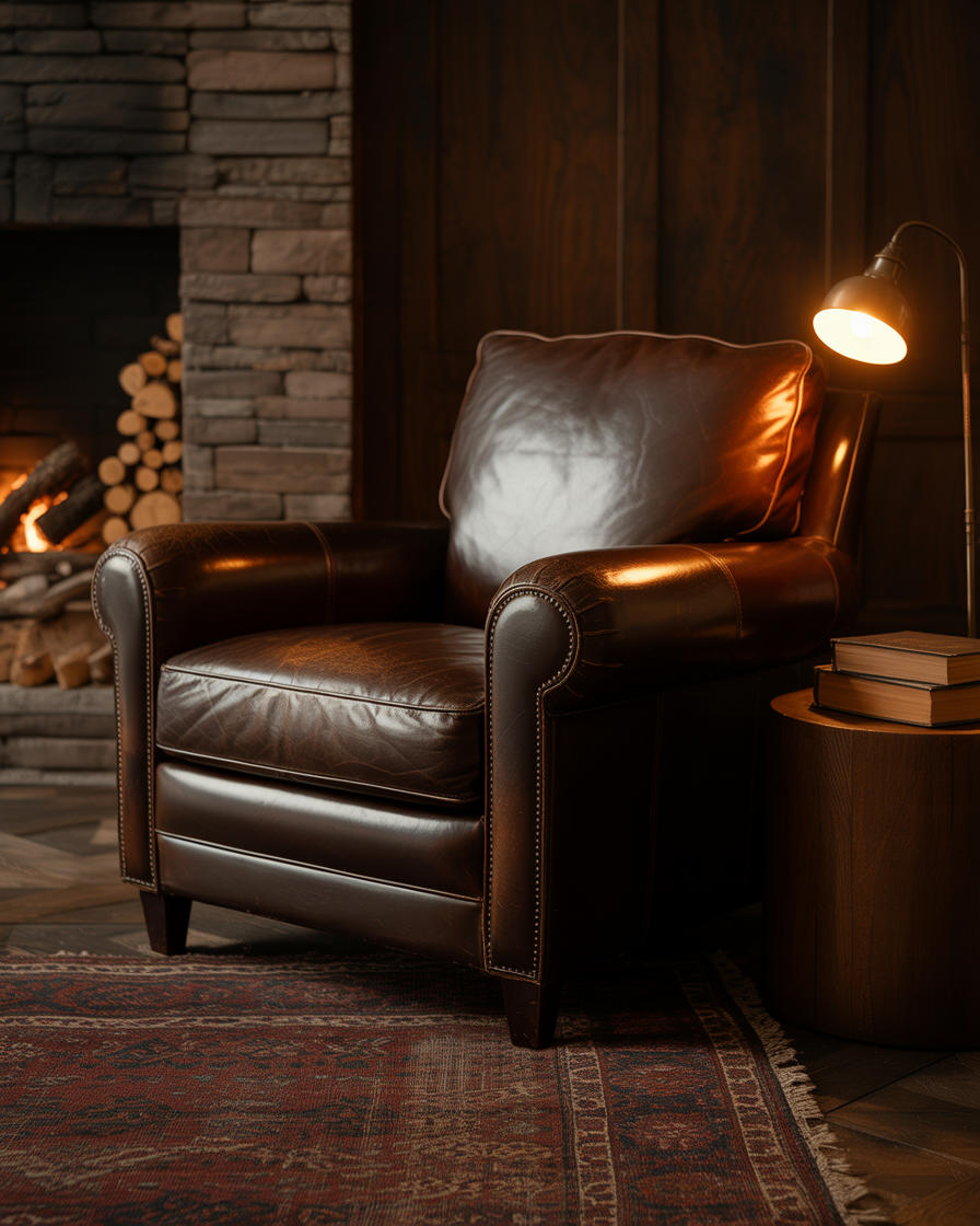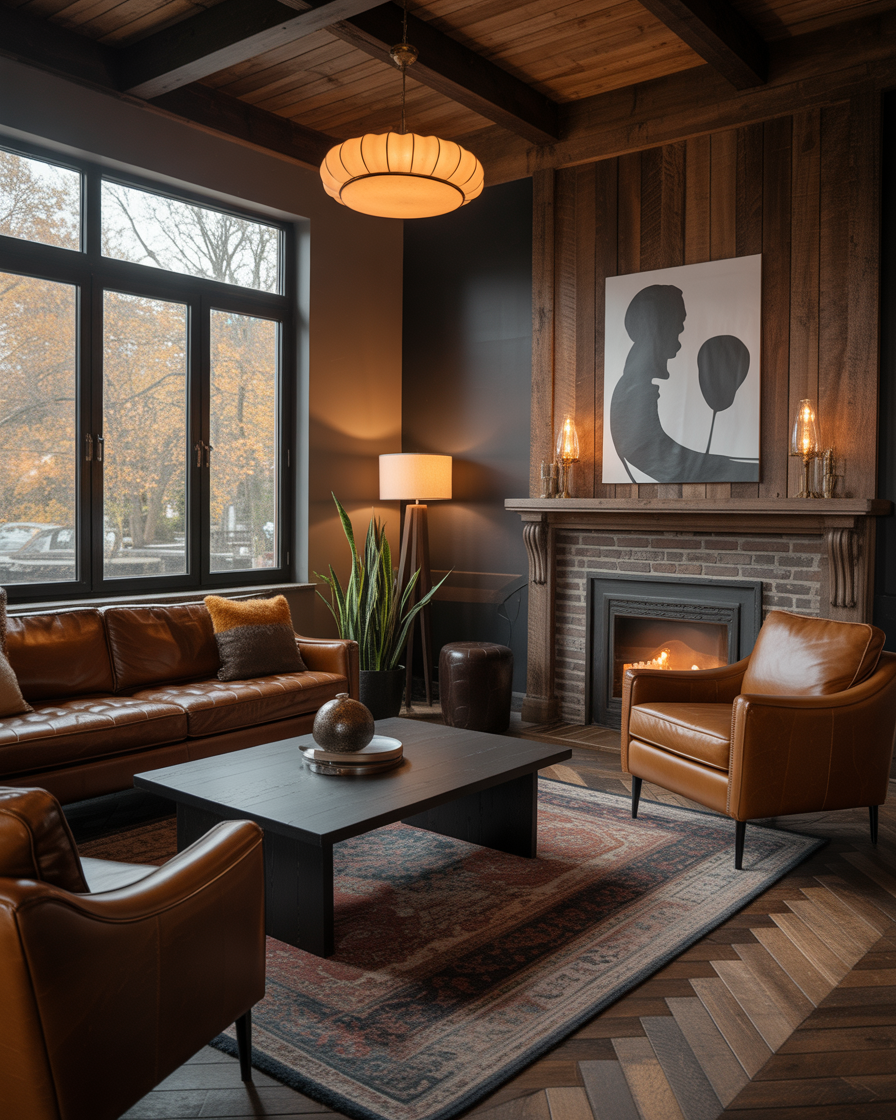 20. Masculine Autumn Lounge with Leather and Wood