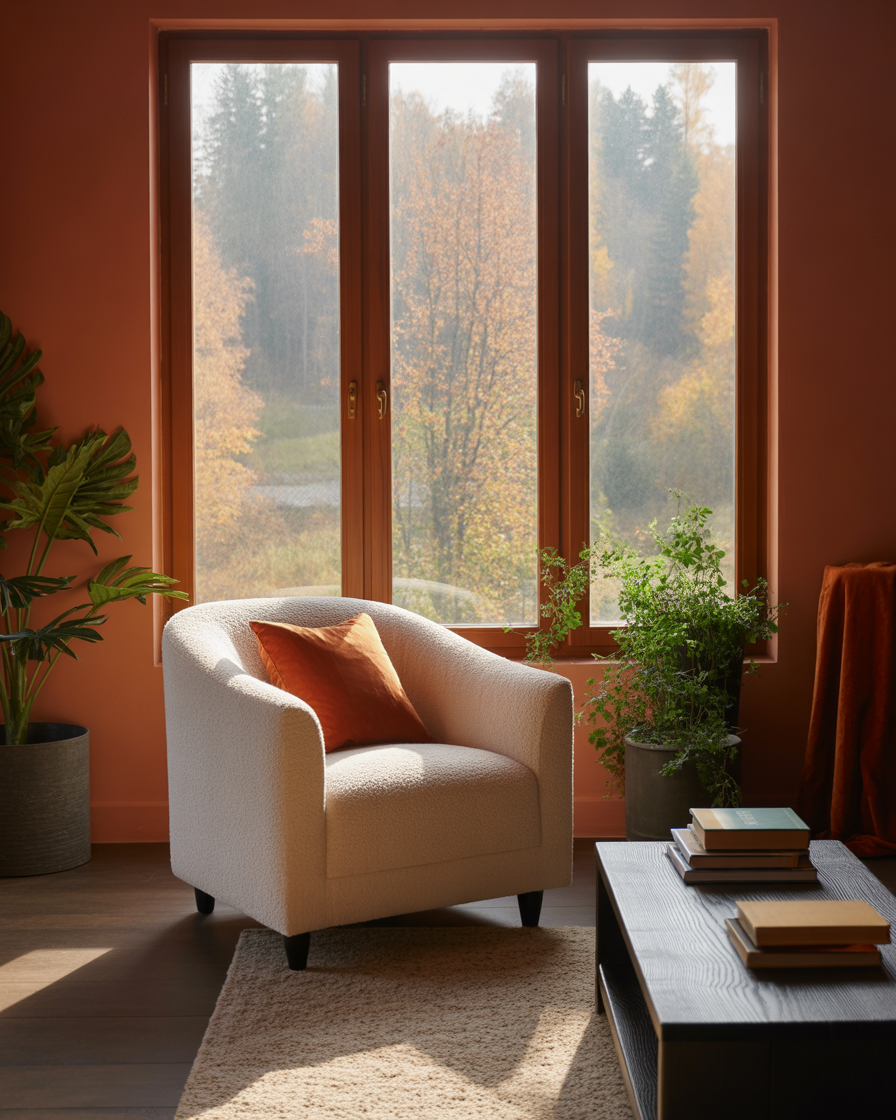 Terracotta is fall’s unsung hero. These warm clay-inspired tones instantly give a room a grounded, aesthetic cozy appeal. Use terracotta vases, candle holders, or even pillow covers to bring an earthy balance to any bedroom or dining nook. This hue pairs perfectly with green plants, wood furniture, and ivory throws, adding depth without overwhelming the senses.