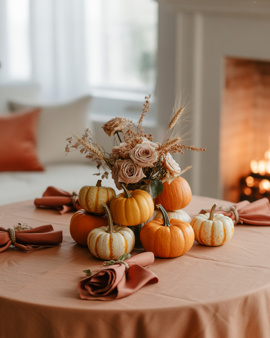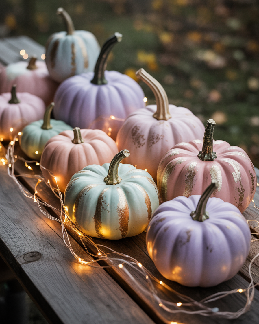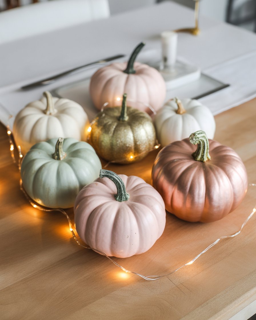 Nothing says fall like pumpkins, but give them a fresh spin by painting them in soft pastels, matte white, or even metallics. Look modern but playful; group them in threes as centerpieces. Add faux leaves or fairy lights underneath. This is a great diy decorations for party idea or wedding tables where you want whimsy and elegance combined.