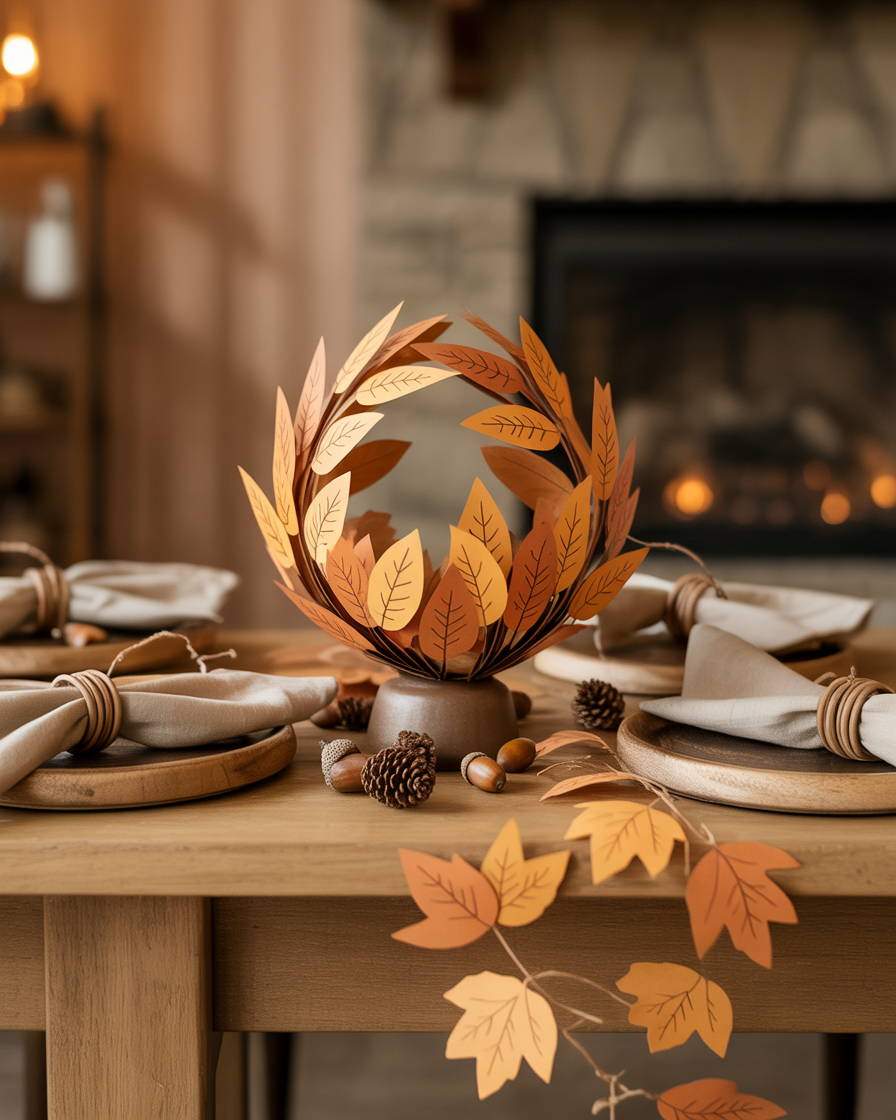 This one’s for the creatives: make your own paper leaf garlands, pumpkin cut-outs, or napkin rings. Use kraft paper, origami folds, or recycled materials. Use a paper cornucopia, or wreaths of leaves as a diy centerpiece. Ideal for decorations centerpieces on a budget, or for adding a personal touch to any Thanksgiving or party table.