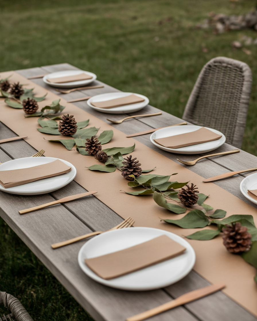For a true simple, diy look, embrace what’s outside. Gather autumn types of centerpieces by gathering nearby leaves, acorns, pinecones and small branches that give simple forms of autumn design. Put kraft paper on the table and into the middle distribute these finds. Perfect for easy gatherings or rustic outdoor party tables. It’s affordable, eco-friendly, and wildly charming.