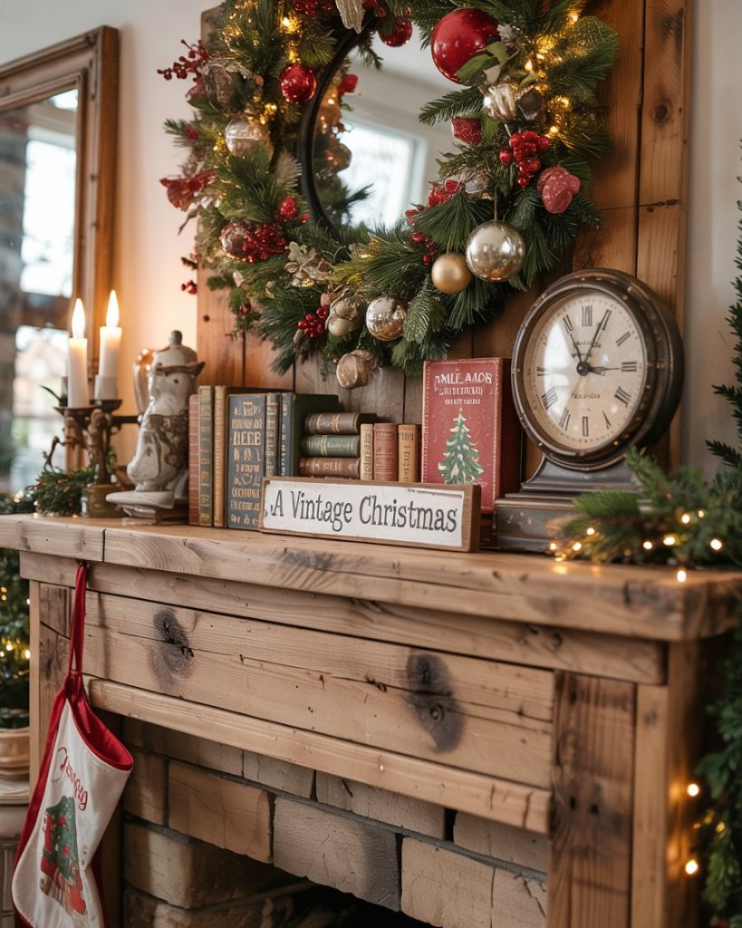 Add literary flair to your mantel with old time storybooks, old-fashioned clocks and homemade wooden signs. Pile books with different heights and include in short garlands or battery candles to keep warm. It is among the most comfortable, memory-laden concepts mantle lovers will cherish.