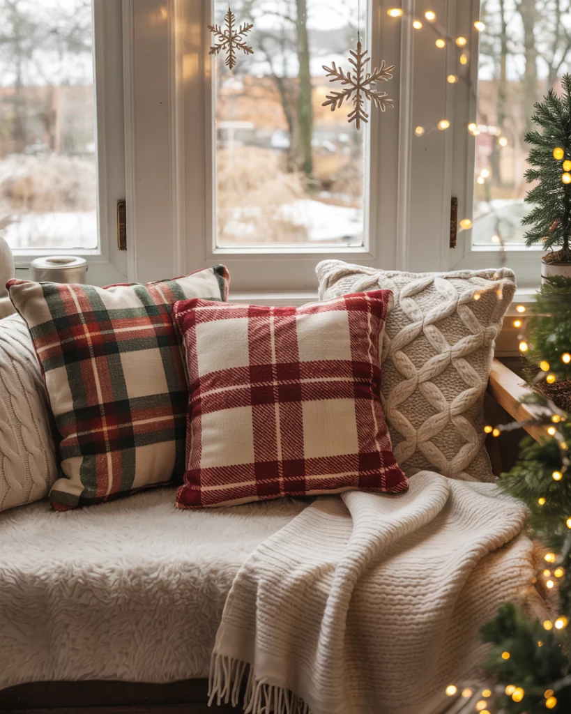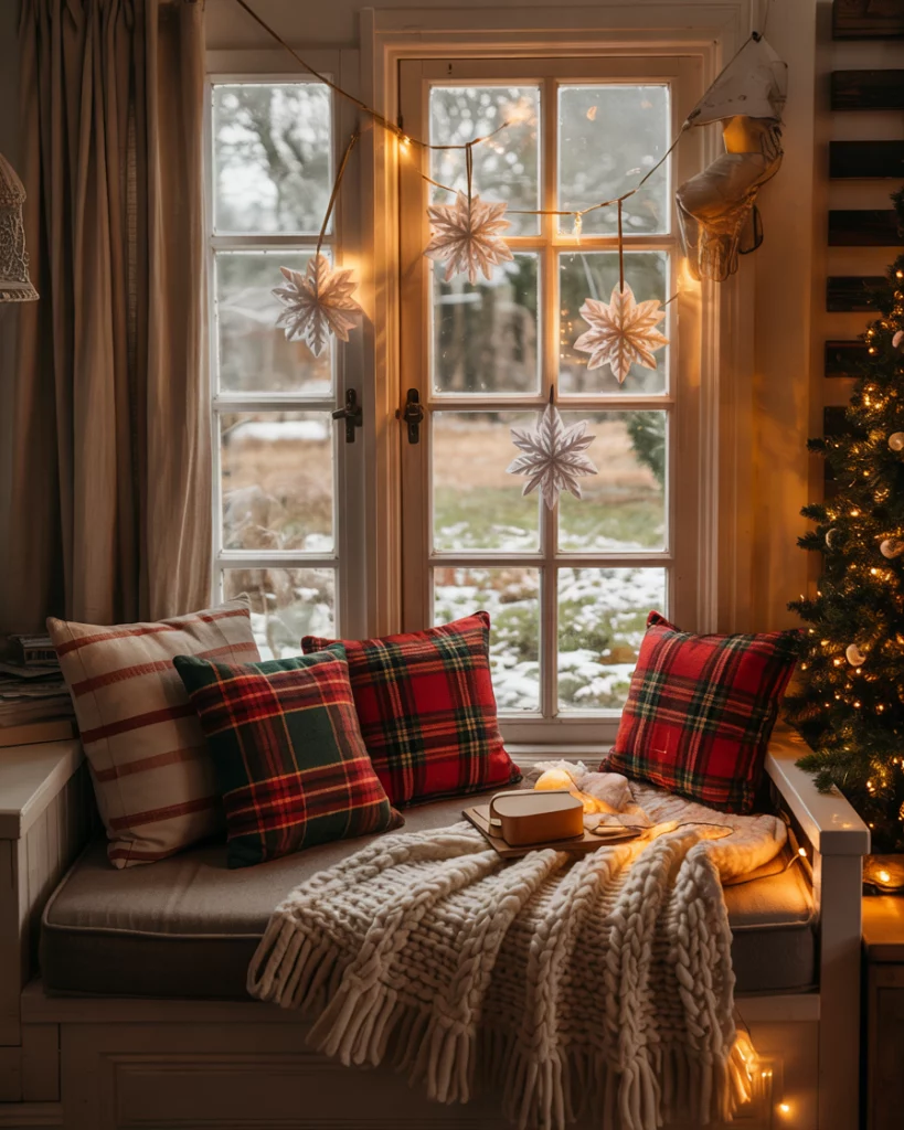 Dress your window-seat into a merry Christmas nook with warm, layered fabrics such as plump throws, buffalo plaid pillows and linen curtains. Put up hanging snowflake decorations or homemade garlands of felt stars. This concept converts the neglected spaces into magical winter getaways, particularly when it comes to concept of living room cozy living.