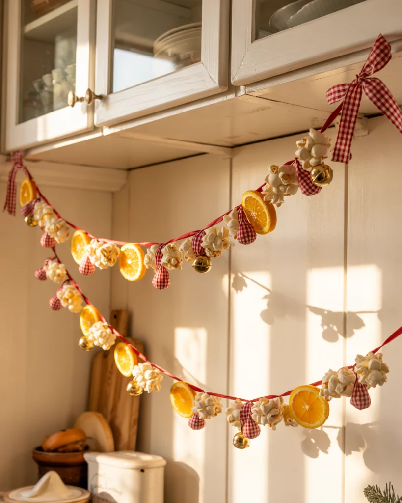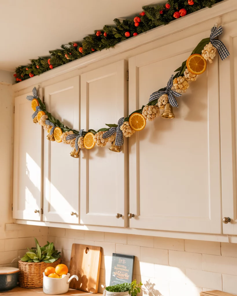 15. Home crafted Garland over Kitchen Cabinets.