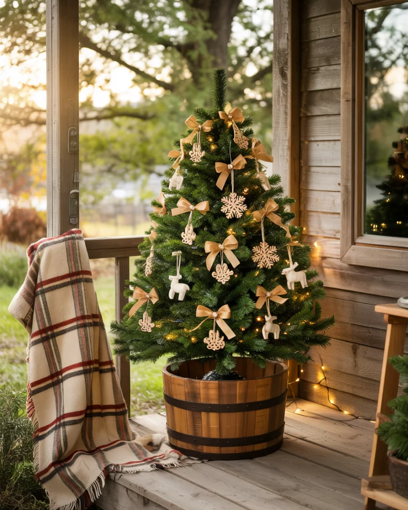 Put a live mini tree into a wooden barrel and adorn with homemade/dried fruit or small burlap bows. Place it at your front steps or patio to get a warm, outdoor and rustic feel. It is one of those ideas diy that can be completed in just a few minutes yet bring big impact.