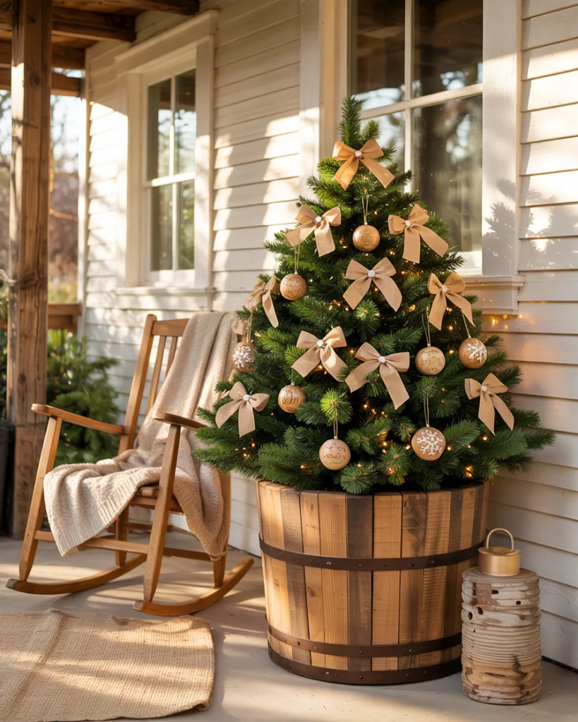 16. Rustic Tree in a Wooden Barrel Out-of-Door.