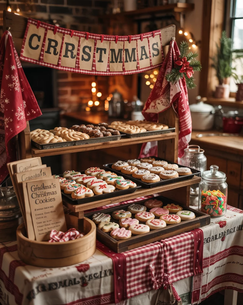 Become a retro cookie counter and transform your kitchen counter into a retro cookie counter. Have tiered trays, mason jars with sprinkles and the old recipe cards used by grandma on display. Before adding a rolling pin with a bow tied round it and a new stack of sugar cookies, a sweet and heart-warming set-up.