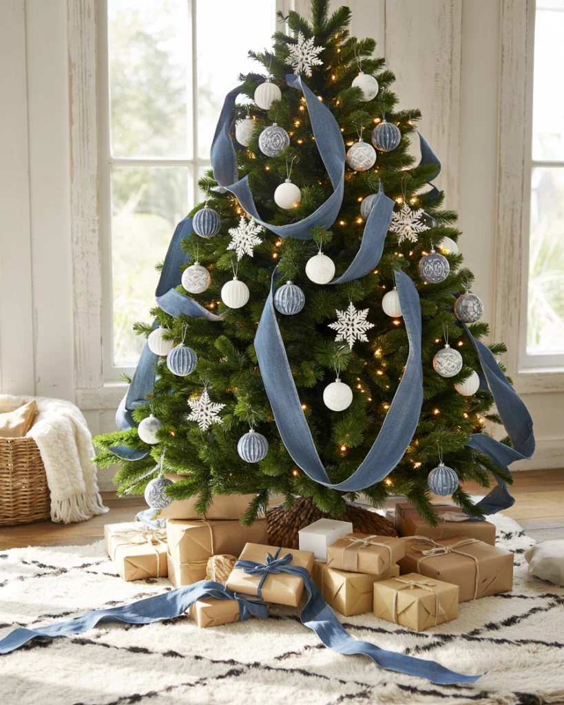 4. Modern Farmhouse Tree, Blue and white.