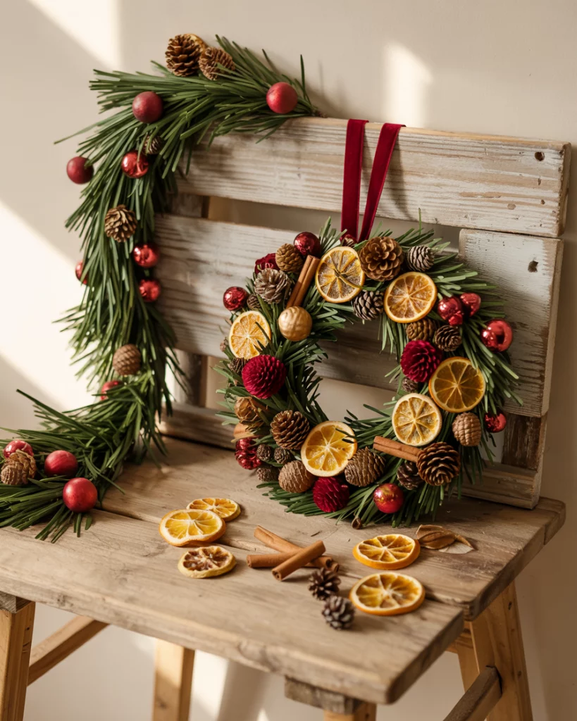 Make a crafting area with diy wreaths ideas diy garlands with friends or children. Dried oranges, pine branches, ribbons, cinnamon sticks are to be used as personal pieces and they smell as delicious as they look. This concept is really effective in corners of the kitchen or even on an outside workbench- it is all about adding creativeness to your conventions.