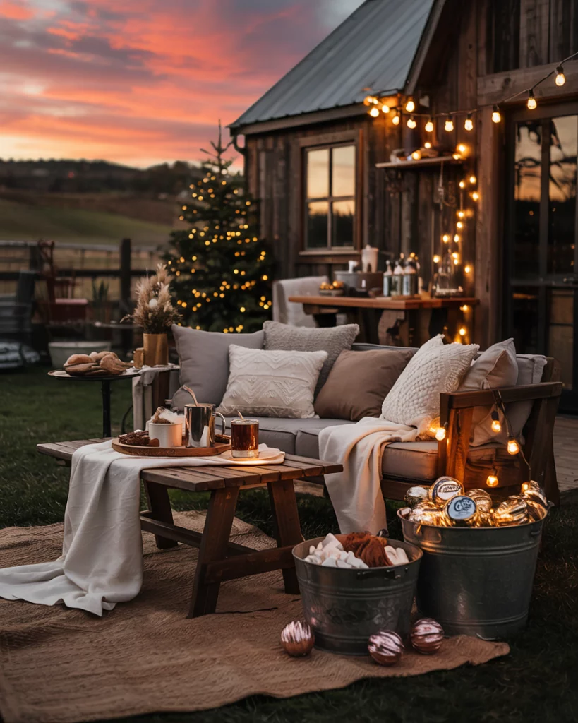 Make your outside area comfortable with warm layers- consider flannel blankets on wood bench, metal buckets with ornaments and a hot cocoa stand with string lights. It is ideal when it comes to party occasions and are interested in getting ideas that go beyond the borders of your home.
