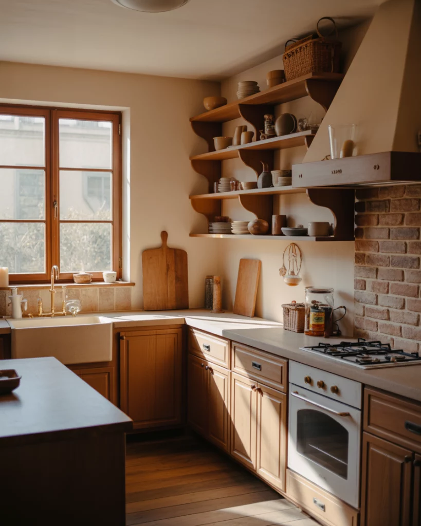 Farmhouse kitchen trends are borrowing from Italian sensibilities, focusing on warmth and simplicity. Natural stone, warm woods, and open shelves for everyday items feel relaxed and social. This approach shifts the kitchen back to being a place for gathering rather than display. Experts often point out that this style works best when kitchens are designed around daily use. Over-styling shelves can feel impractical. Leaving space for real cooking tools keeps the room honest and functional.