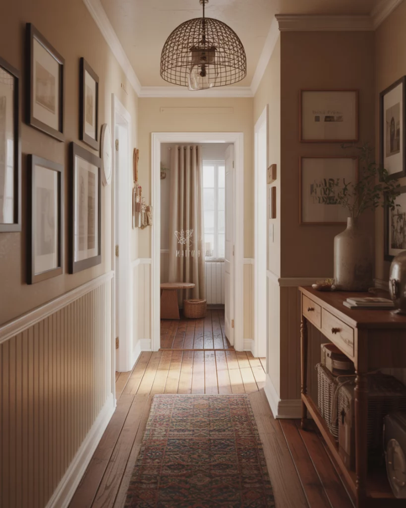 Hallways are no longer ignored. In 2026, eclectic farmhouse hallway ideas use art, runners, and collected objects to add personality. These transitional spaces become visual stories connecting rooms rather than empty pass-throughs. Where this works best is in longer hallways with natural breaks. Designers suggest keeping a consistent color palette so the eclectic elements feel cohesive. Too many competing styles can overwhelm narrow spaces.