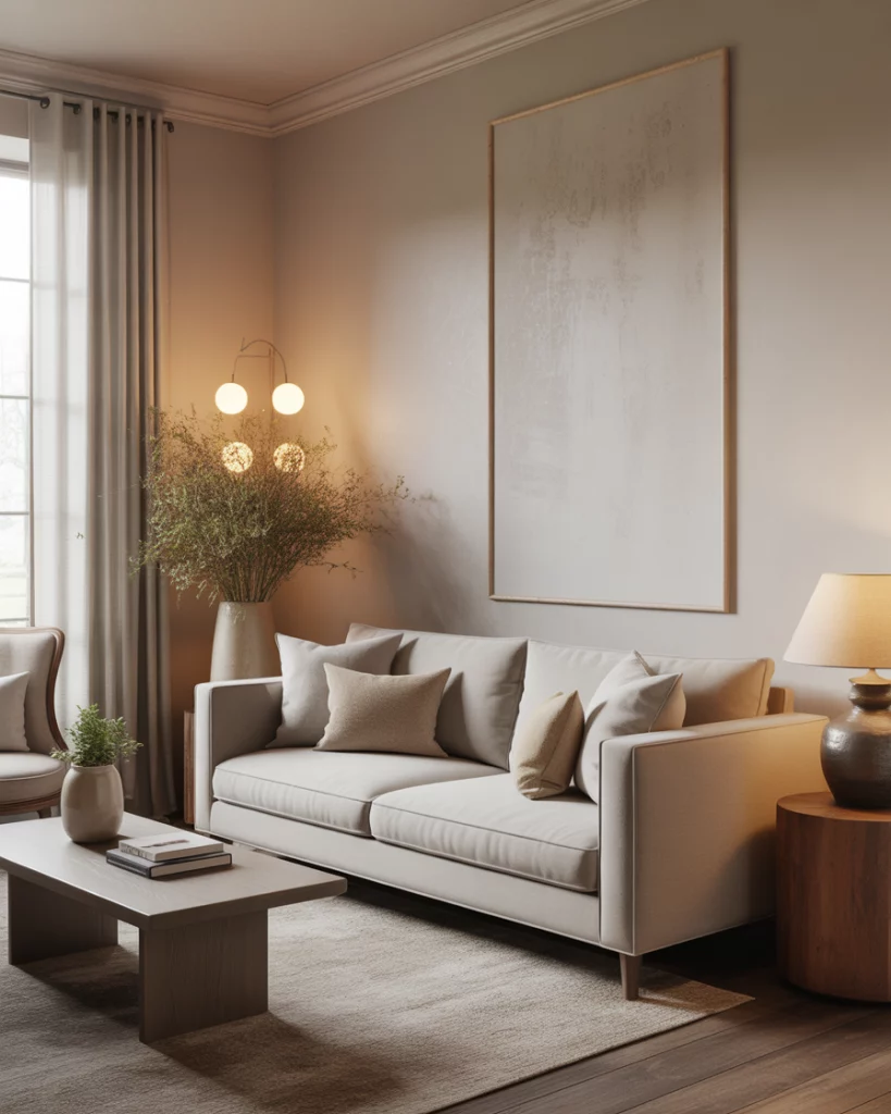 In 2026, the farmhouse living room is leaning cleaner and calmer, blending modern lines with familiar country warmth. Think low-profile sofas, pale woods, and fewer decorative layers, letting texture do the work instead. This approach keeps spaces open and breathable, especially in suburban homes where open plans still dominate. The look feels updated but never cold, rooted in comfort rather than trend-chasing. This style works best in homes that already get good natural light and don’t rely on heavy decor to feel finished. Designers often recommend starting with one strong anchor piece, like a sofa or rug, and editing everything else around it. The result feels intentional, not sparse, and suits everyday American life, where living rooms double as gathering and resting spaces.