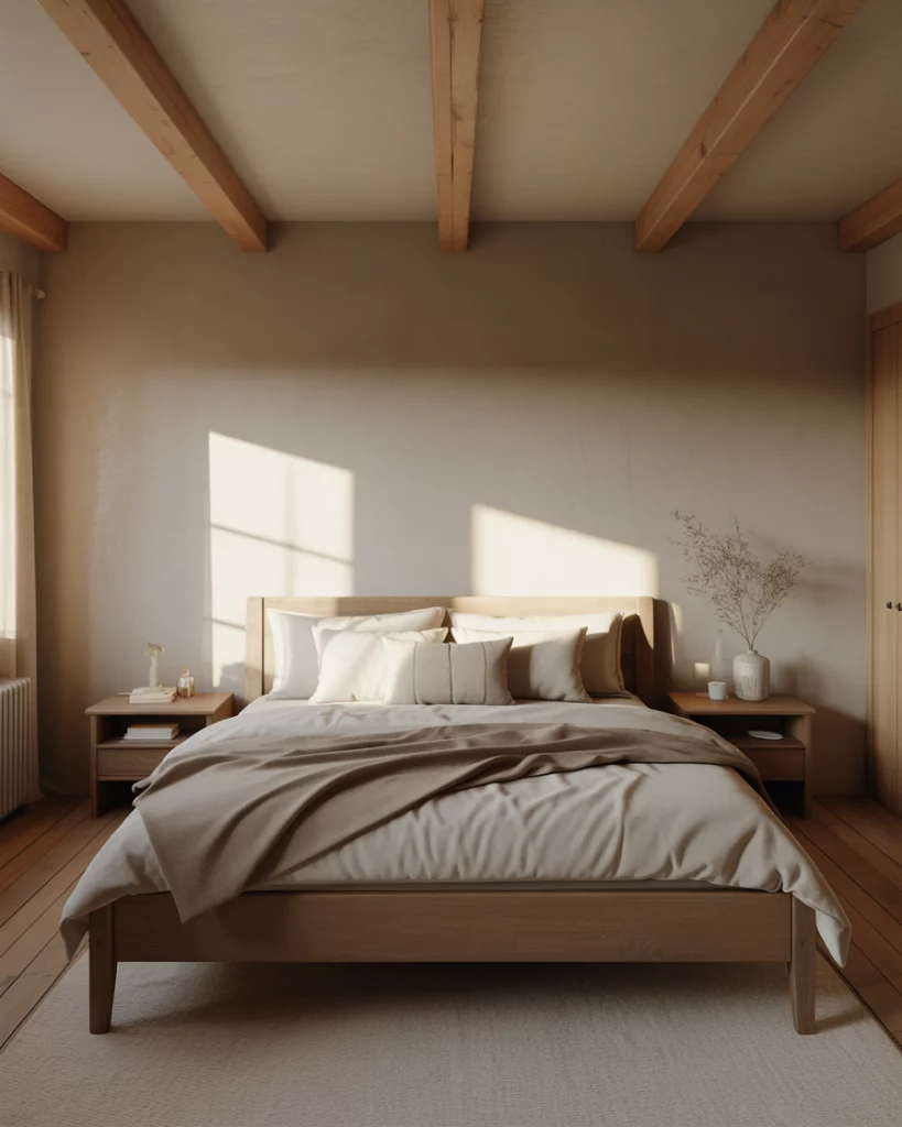 Bedrooms are becoming quieter sanctuaries, with rustic farmhouse elements paired with a simple mindset. In the farmhouse bedroom, raw wood headboards, soft quilts, and neutral walls create a grounded, restful mood. There’s less emphasis on statement decor and more on materials that age well. It’s a look designed for real rest, not just photos. Where this style shines most is in primary bedrooms, where visual quiet matters. Designers note that limiting contrast and sticking to a narrow color range helps the room feel larger and more peaceful. It’s especially effective in older homes where architectural details already bring character.