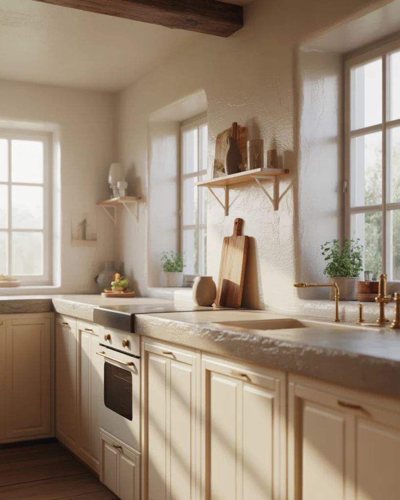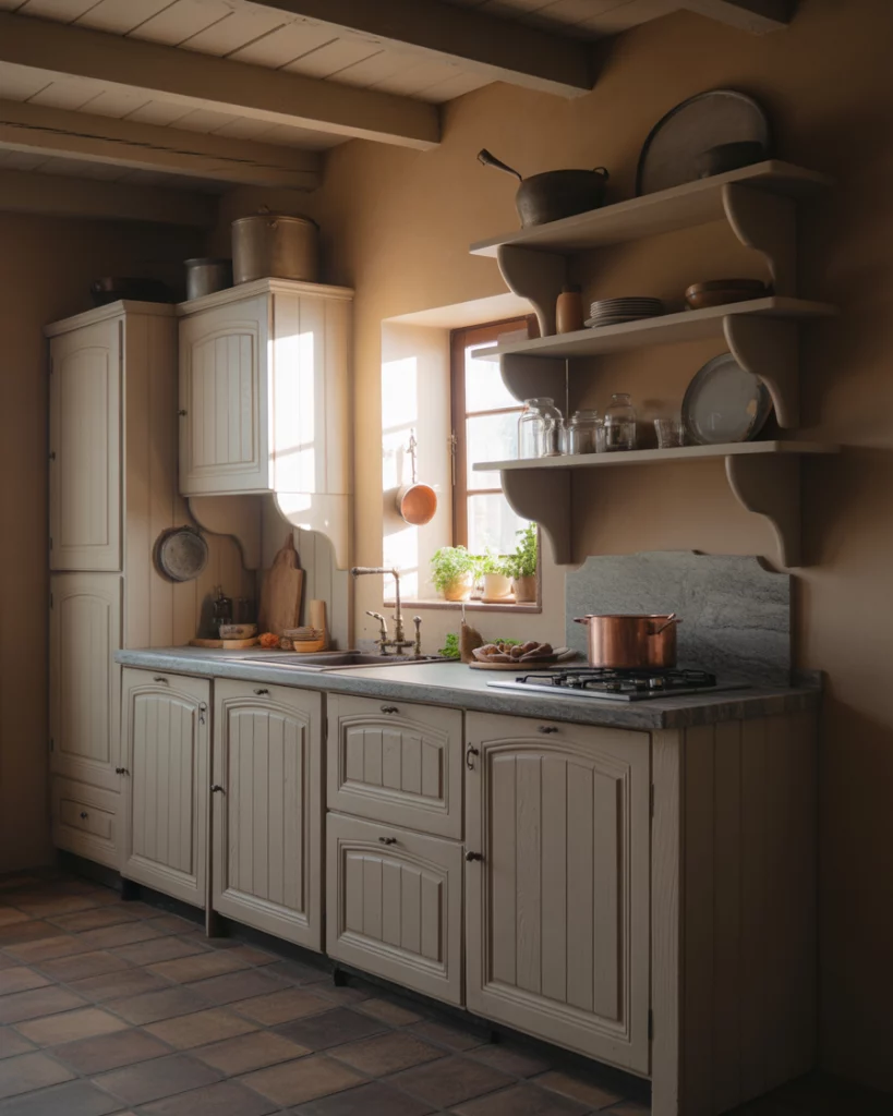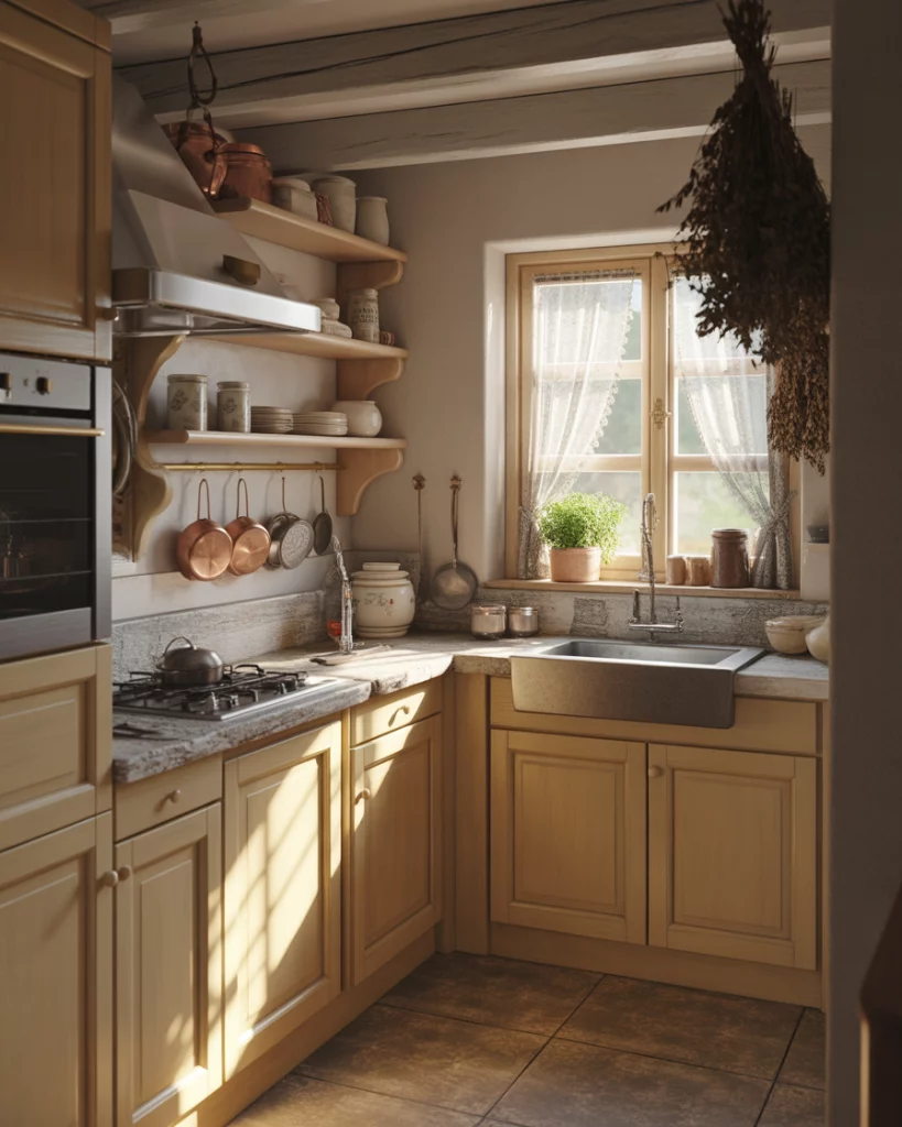 The farmhouse-style mini-kitchens within European-style homes are focused on efficient charm. By utilizing compact layouts with clever storage, and simplified materials, these small kitchens feel purposeful instead of feeling like a constraint. Where older homes or apartments with non-expandable walls are concerned, this approach works best. Smart design is more important than square footage.