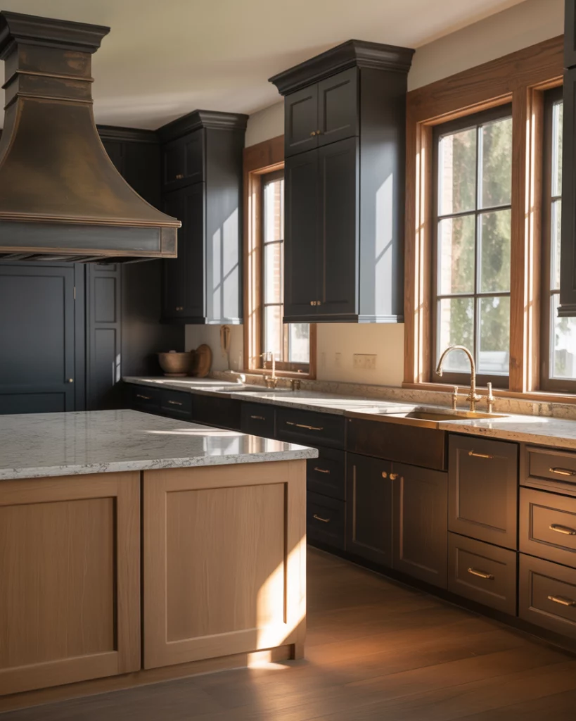 For depth seekers, Dark tones wedded with Contemporary shapes are boldly shaping a new direction for farmhouse. Clean-lined island design and simple cabinetry keep the look modern, while richer tones add drama and intimacy. A common misstep is undervaluing the importance of lighting. Layered lighting—ambient, task, and accent—ensure the space feels rich and welcoming rather than closed-in.