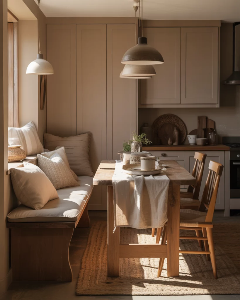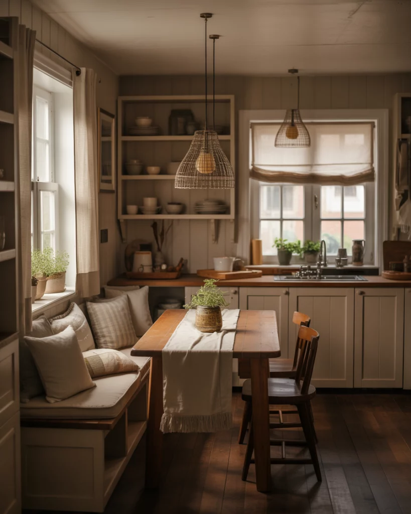 In 2026, Cozy farmhouse kitchens design shifts from showy to more practical uses, such as living. With soft lighting, riders, comfy, and thoughtfully placed seats where people enjoy tables, support routine, and foster daily functions. The overall ideas focus on comfort over perfection. American homeowners are purposely placing seats where people are invited to stay. It reflects how these kitchens are designed to become all-day zones and not just places to do the cooking.