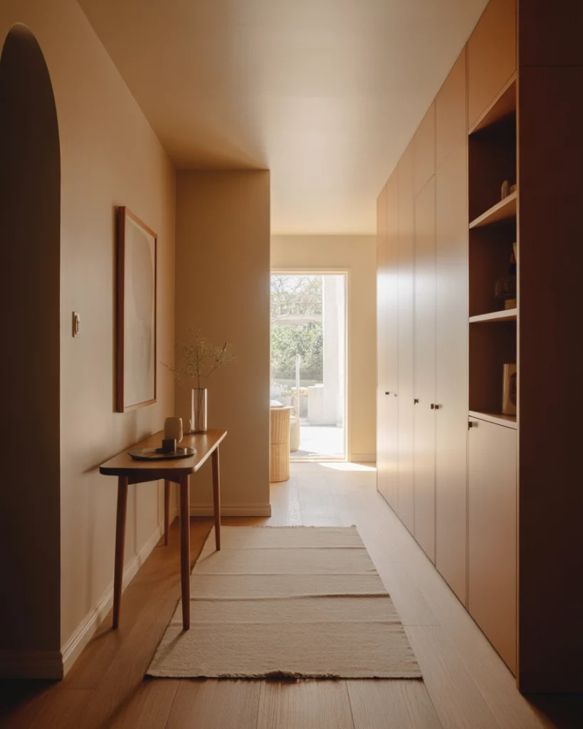 Tiny entries like little foyers deserve attention. Smaller homes and apartments benefit from clever design tricks like narrow shelving, wall-mounted units, and a smaller table. Lighter colors and vertical storage visually expand a room. Choosing furniture that is too deep is a common error. Entryways with little furniture designed to keep circulation clear. Shallow pieces keep the space from feeling crowded.