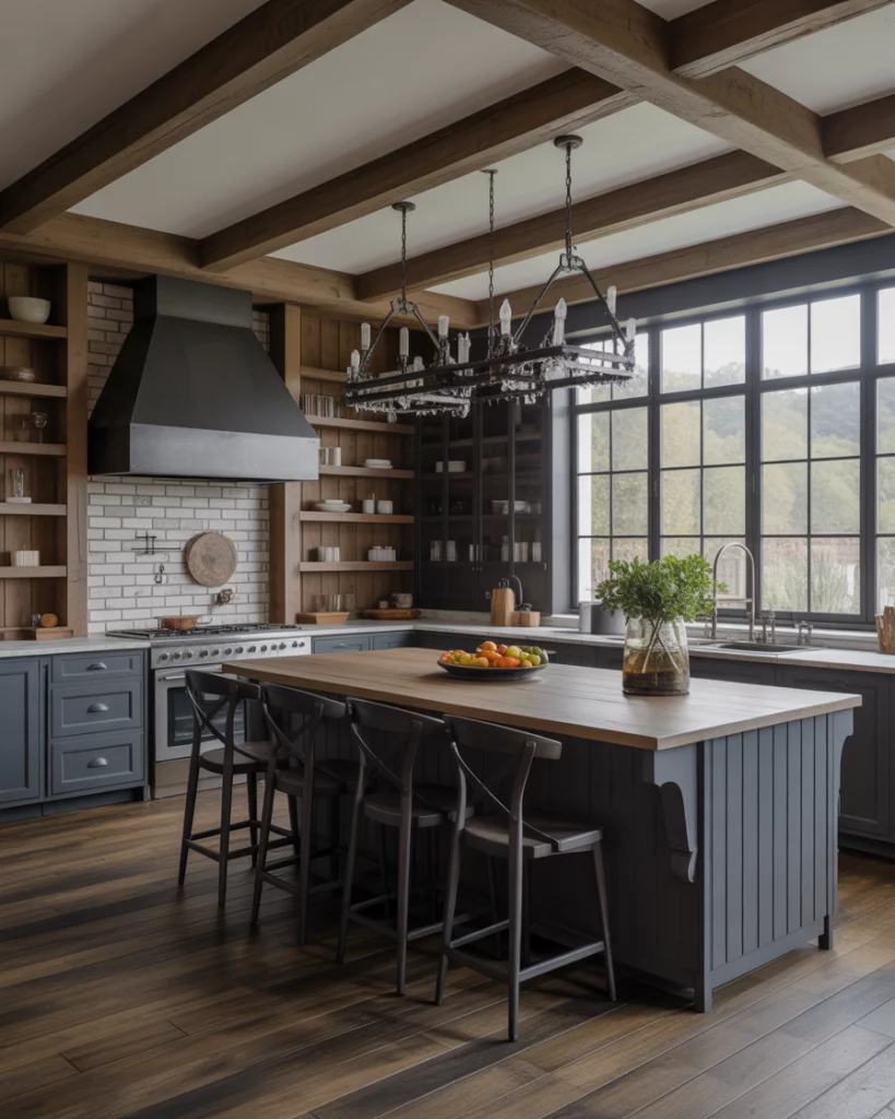 17. Blue-Toned Kitchen Farmhouse Fusion